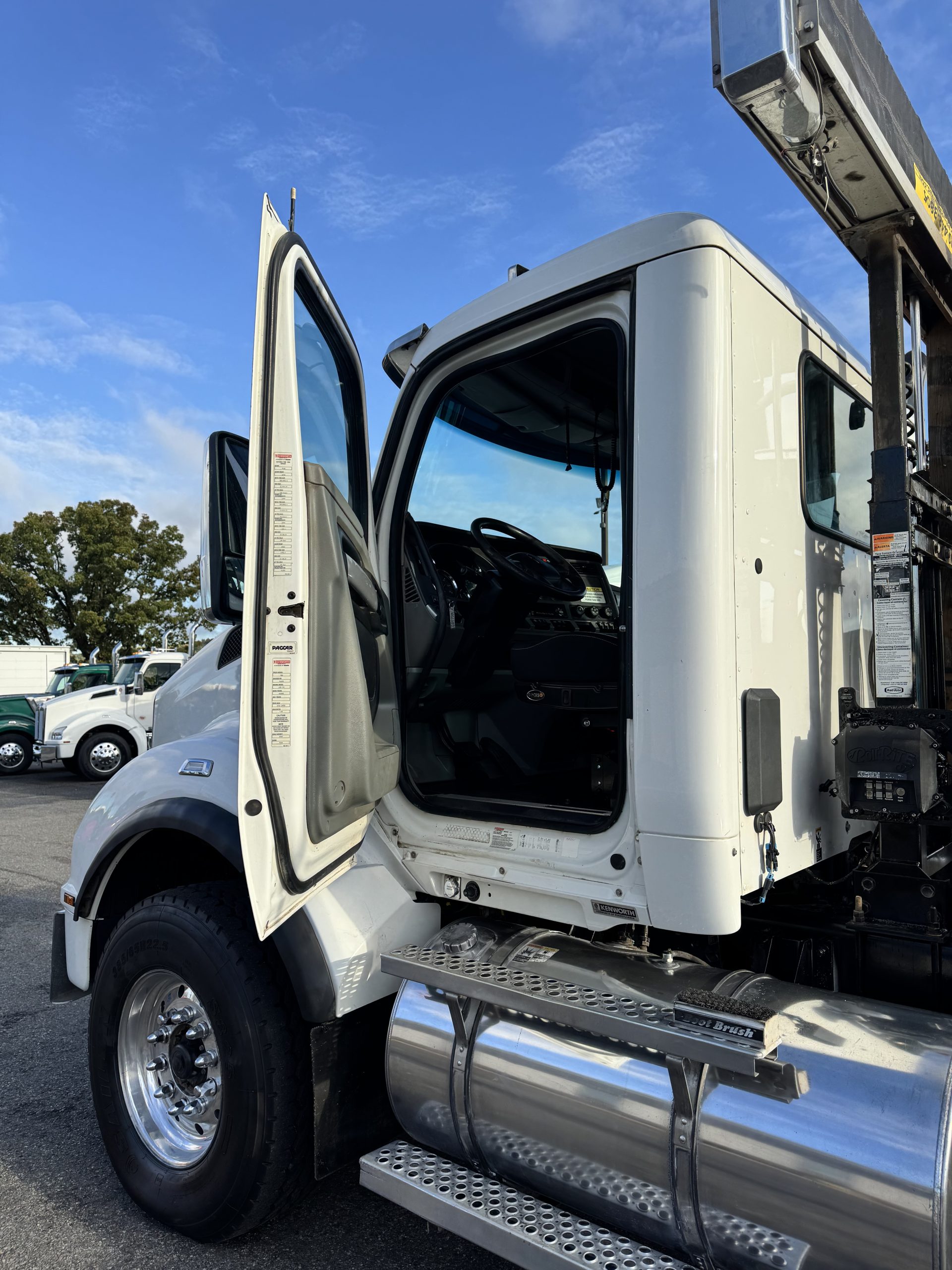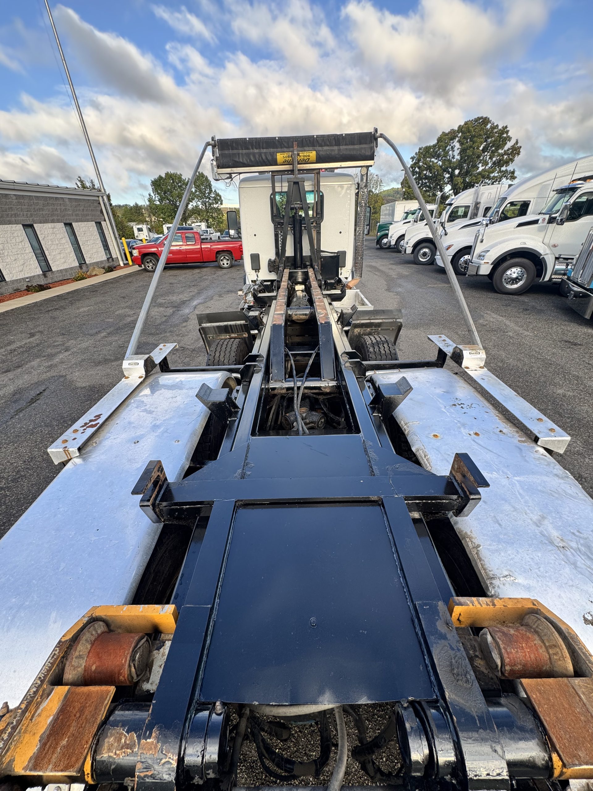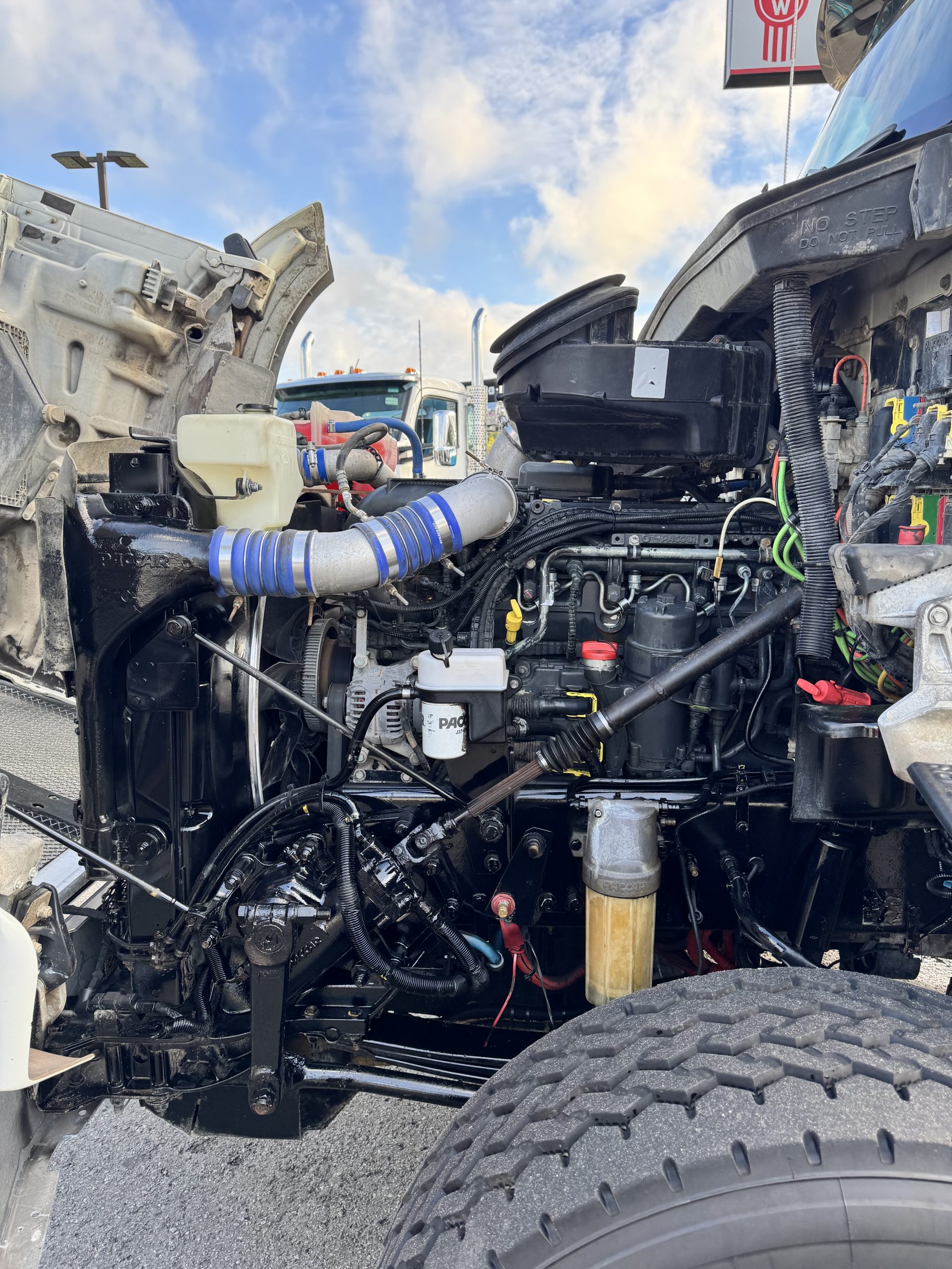 2020 T880 HOOK LIFT, PACCAR MX-13 430 HP, ALLISON 4000 RDS AUTOMATIC TRANSMISSION, 268″ WHEELBASE. !!!NEW REMAN ENGINE RECENTLY INSTALLED AT 197,453 MILES!!! (ONLY 568 HOURS ON ENGINE). 18.7K STEER AXLE, 14.4K PUSHER AXLE, 46K REAR AXLE W/LOCKERS. CHALMERS SUSPENSION. DISC FRONT BRAKES, 385 STEER TIRES WITH ALUMINUM WHEELS. 2 NEW!! 385 TIRES INSTALLED ON PUSHER AXLE, ALSO HAS ALUMINUM WHEELS, AND 8 NEW!! 11R22.5 DRIVE AXLE TIRES ON STEEL WHEELS. NEW DPF AND HC DOSER INSTALLED, AS WELL AS NEW STARTER, TORQUE ARMS, FRONT SPRING PINS AND BUSHINGS AND STEER AXLE SHOCKS. NEW DRIVER’S SEAT. NEW FRONT BUMPER, FRESH PM SERVICE, PA STATE INSPECTION, AND DETAIL. STELLAR SHUTTLE HOOKLIFT W/52K CAPACITY.