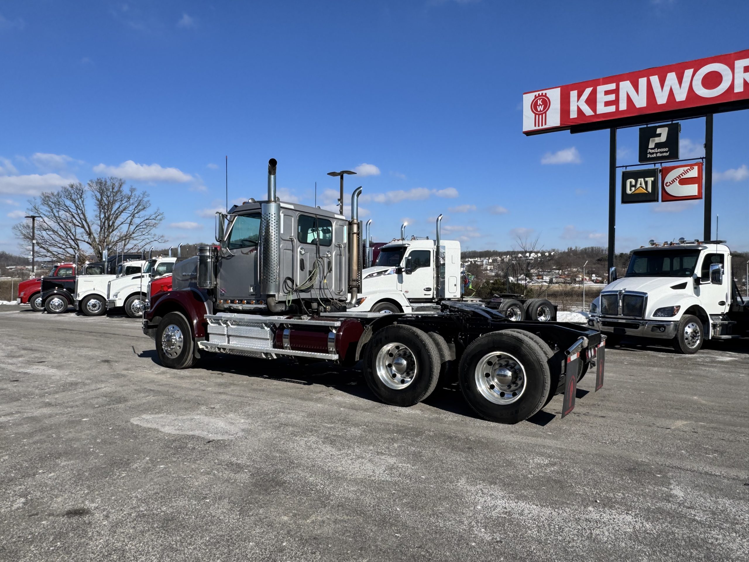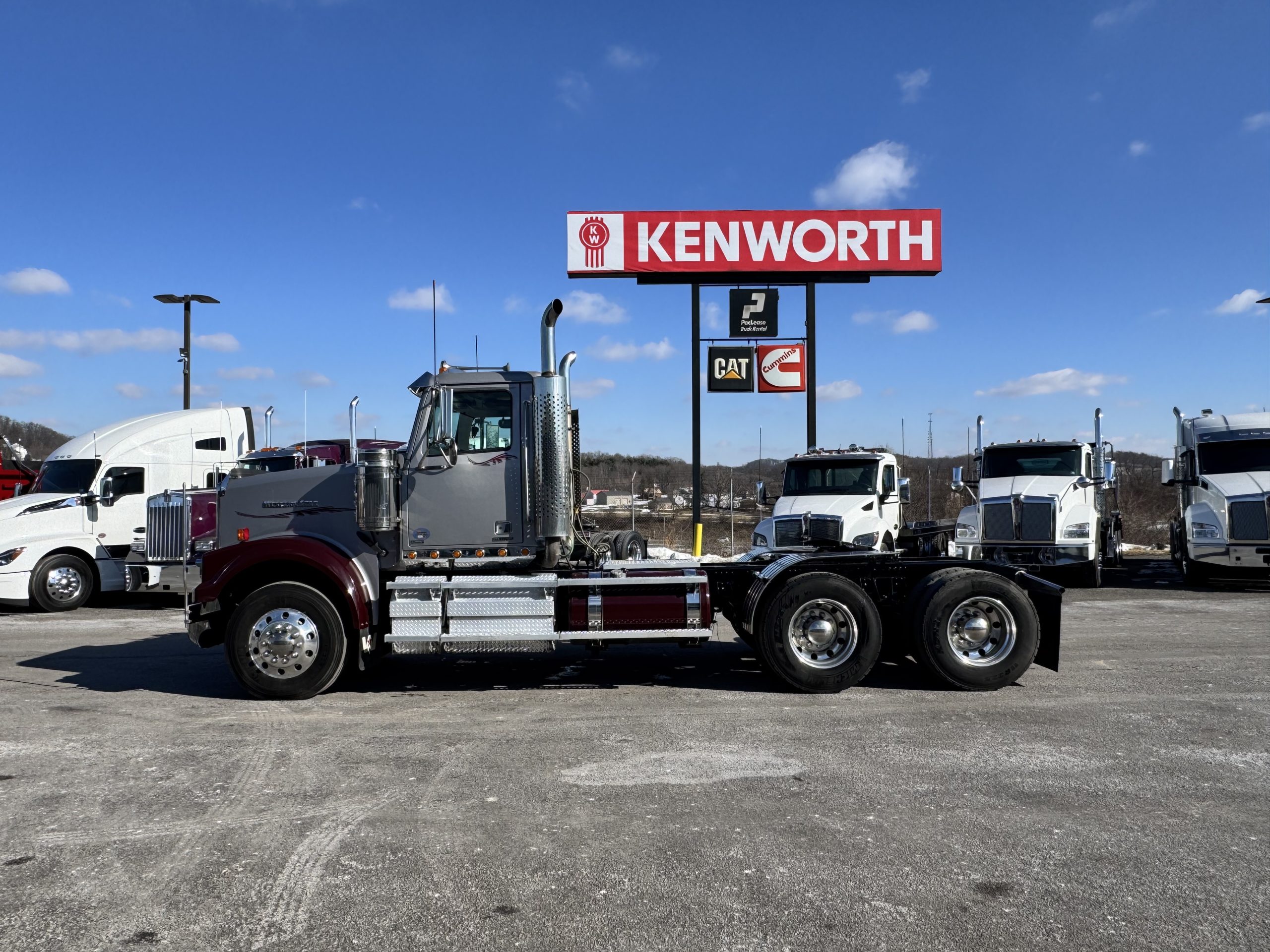 2021 Western Star 4900SF Day Cab in a beautiful Silver/Maroon color scheme. Ready to get to work! Vehicle Specs: • Engine: Cummins X15 565HP 1850 torque • Transmission: Eaton Fuller 10 Speed manual Transmission • Mileage: 506,247 • Wheelbase: 206 Features & Equipment: • 12K & 40K Axle Ratings • Dual Exhaust • Stainless Steel Visor • AM/FM/CD/BT/XM Radio • Telescope/Tilt Steering Wheel • Leather Steering Wheel • 24” Air Slide Fifth Wheel • 100 LH & 100 RH Fuel Tanks • 11R22.5 Tires with Dura Bright wheels • Fresh Sandblasted Frame