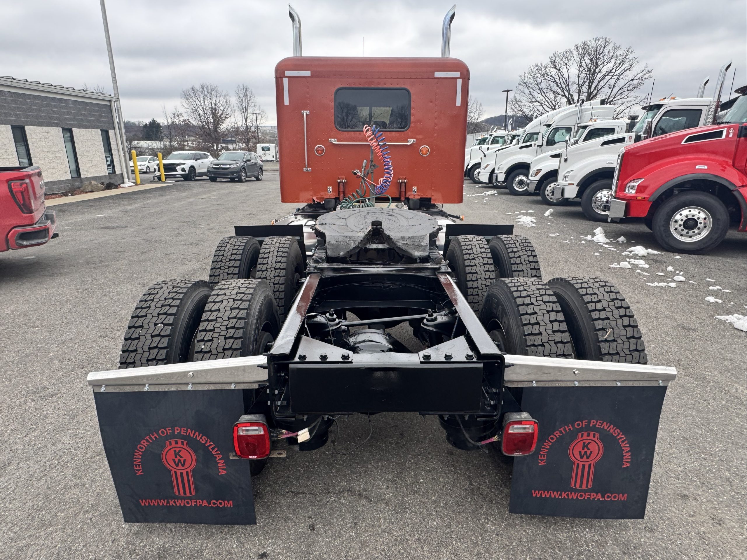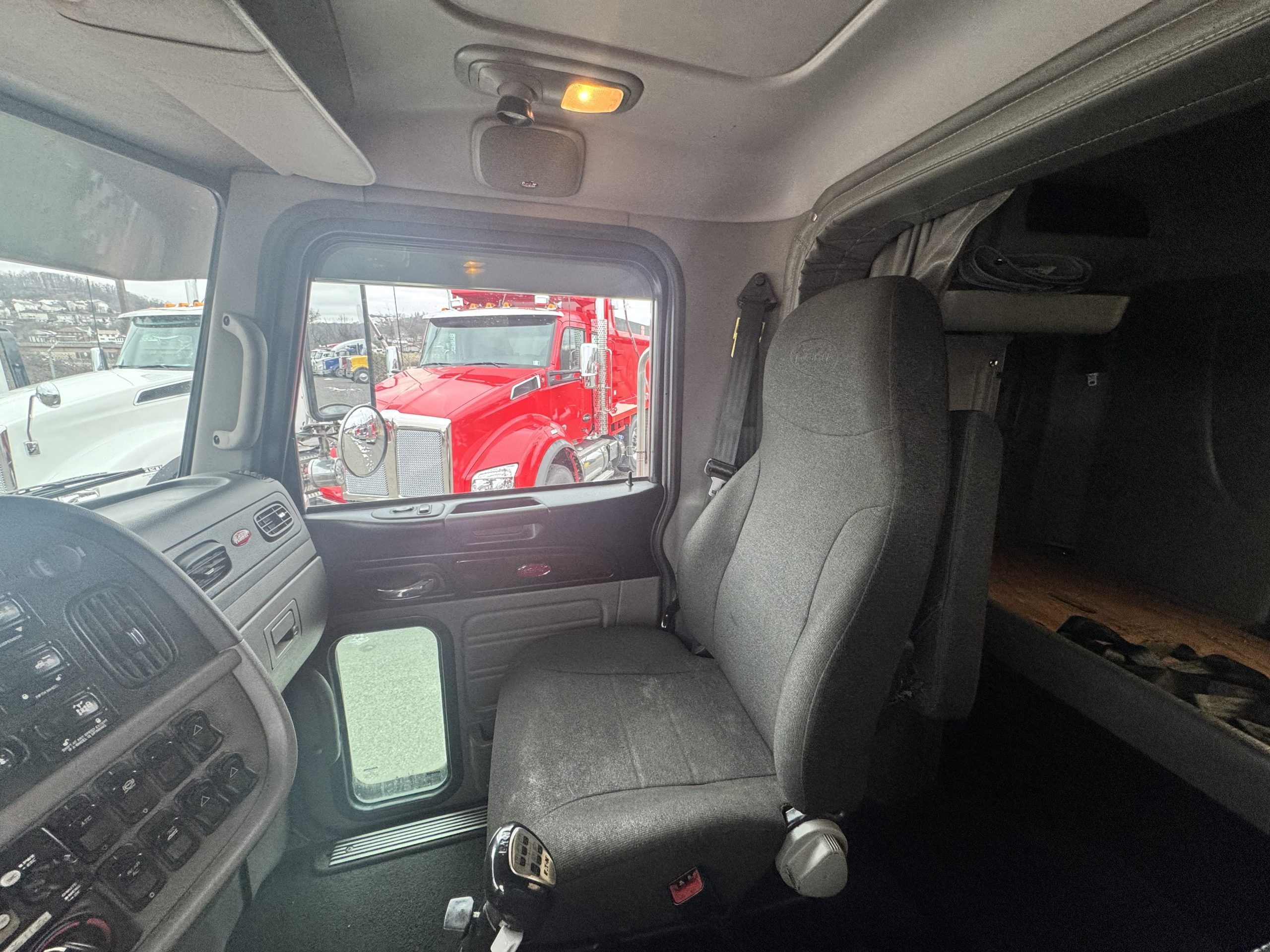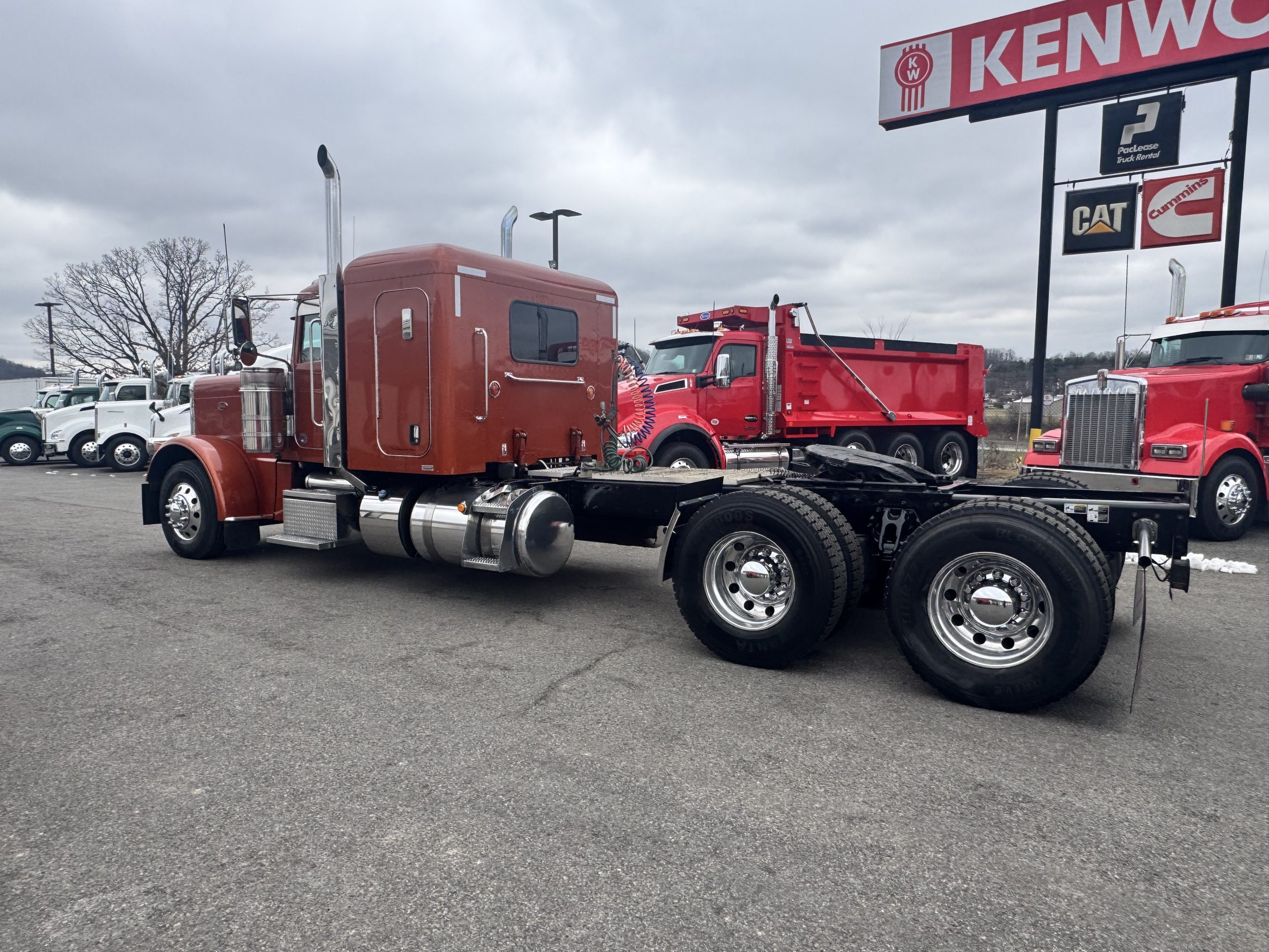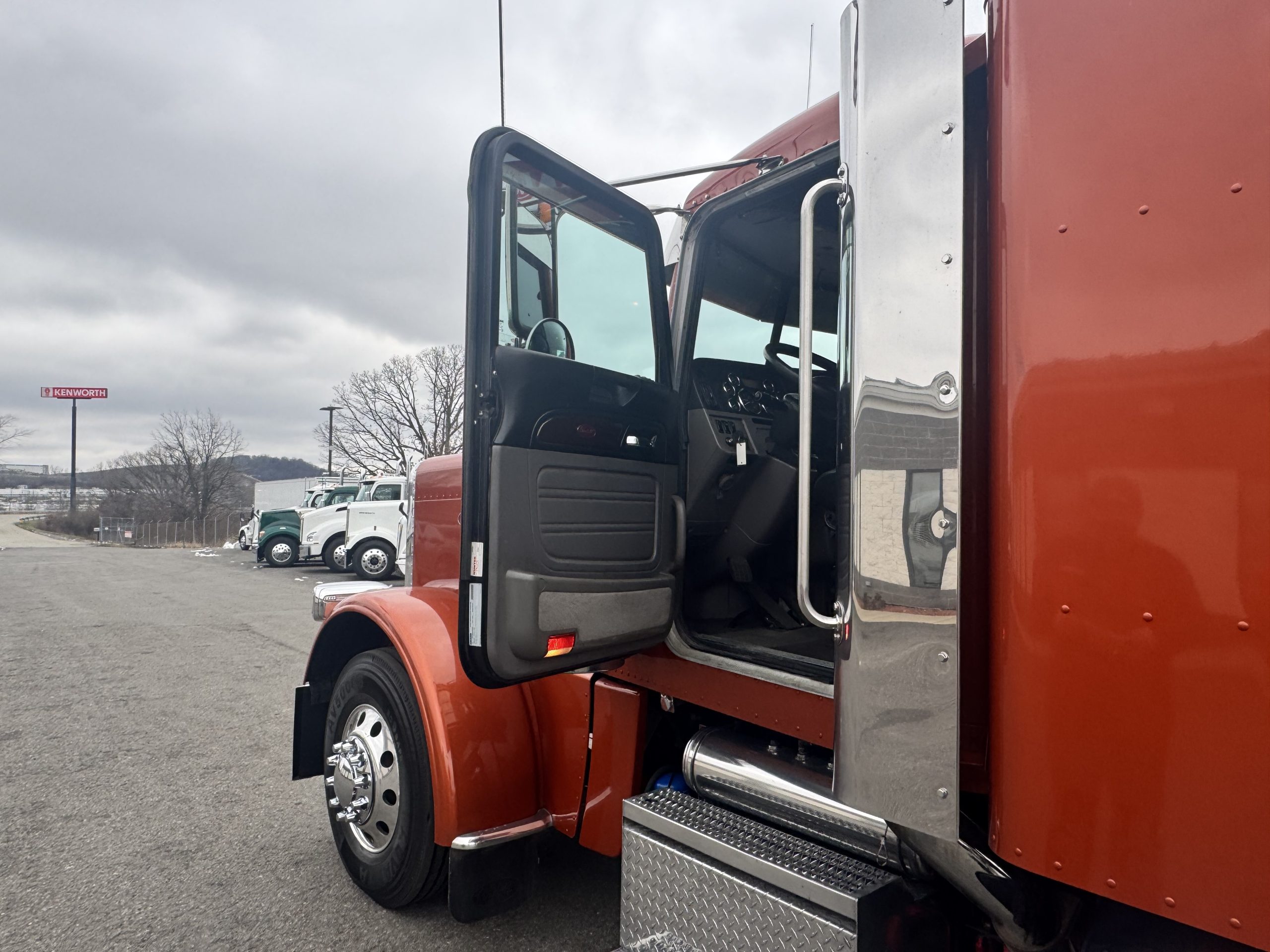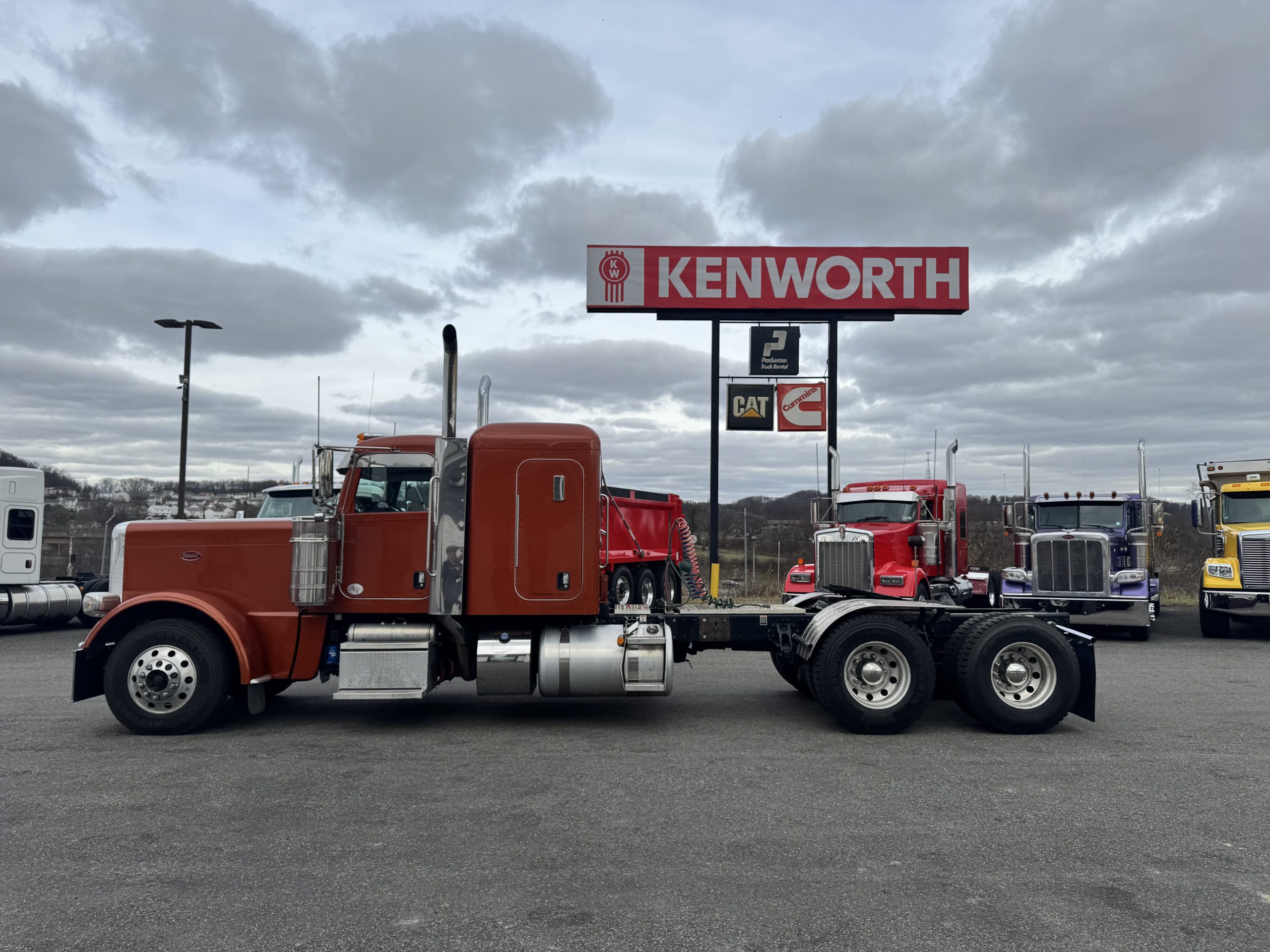 2022 Peterbilt 389 48″ Flat Top Sleeper in a beautiful Copper paint! • Sleeper Size – 48” • Cummins X15 – 500 HP/1850 Torque • Eaton Fuller Manual 18 Speed Transmission • 270” wheelbase • 12K Steer Axle • 40K Rear Axles • 5YR/550K Extended Factory Cummins Engine and Aftertreatment Warranty, valid until 9/28/26 or 550K, whichever comes first. • 7YR/750K Extended Transmission Warranty • 5YR/500K Extended Clutch Warranty • Dual Exhaust • Leather/Air Ride Driver Seat, with Passenger Side Tool Box Seat • Rear Sleeper Window • Davco Fuel/Water Separator • Stainless Steel Drop Visor • New Quarter Fenders. • New Bumper, and Mud Flap Hangers. • Eight New Drive Tires!!! • Battery Disconnect Switch • Fresh PM Service, Detail w/Mattress, and PA State/DOT Inspection. Ready to hit the road!!