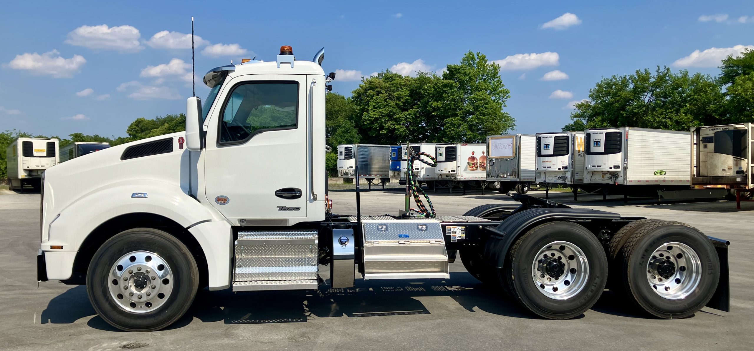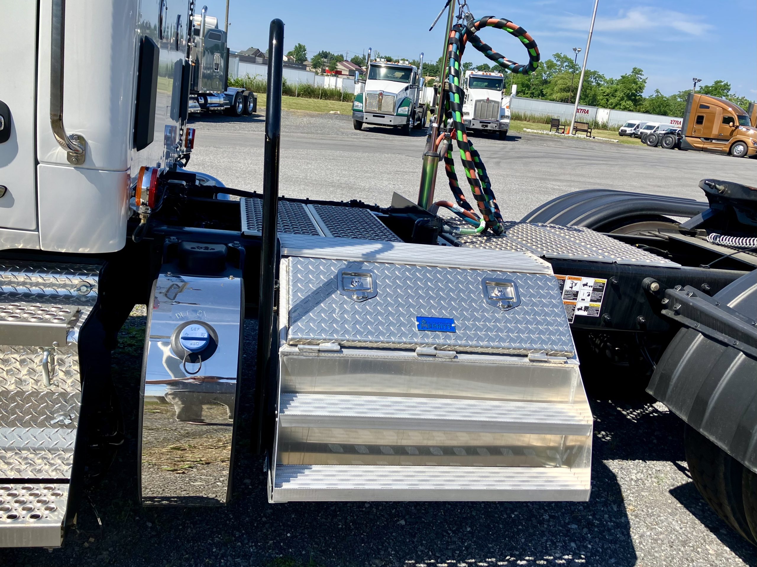Disc Brakes, Dual Locking Rears, Durabright Wheels, XM Compatible Radio, Cobra 29 CB Radio, Minimizer 1/2 Fenders and Floor Mats, Merritt Diamond Plate Aluminum Saddle Tool Box, Beacon Lamps….