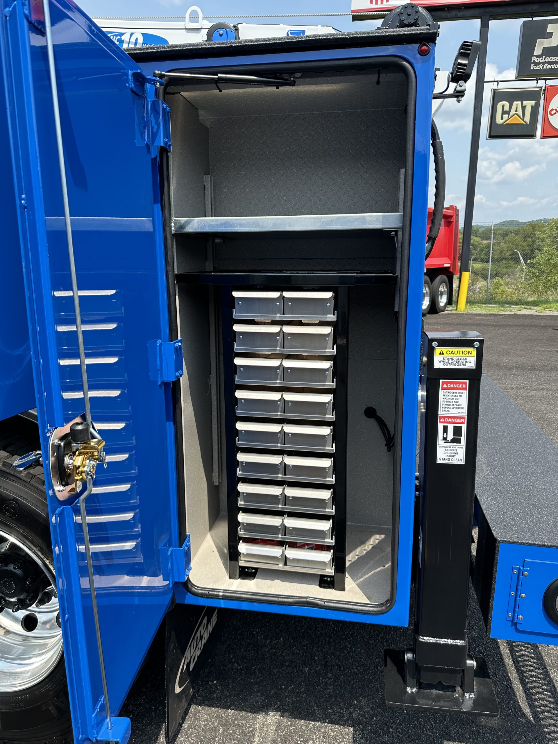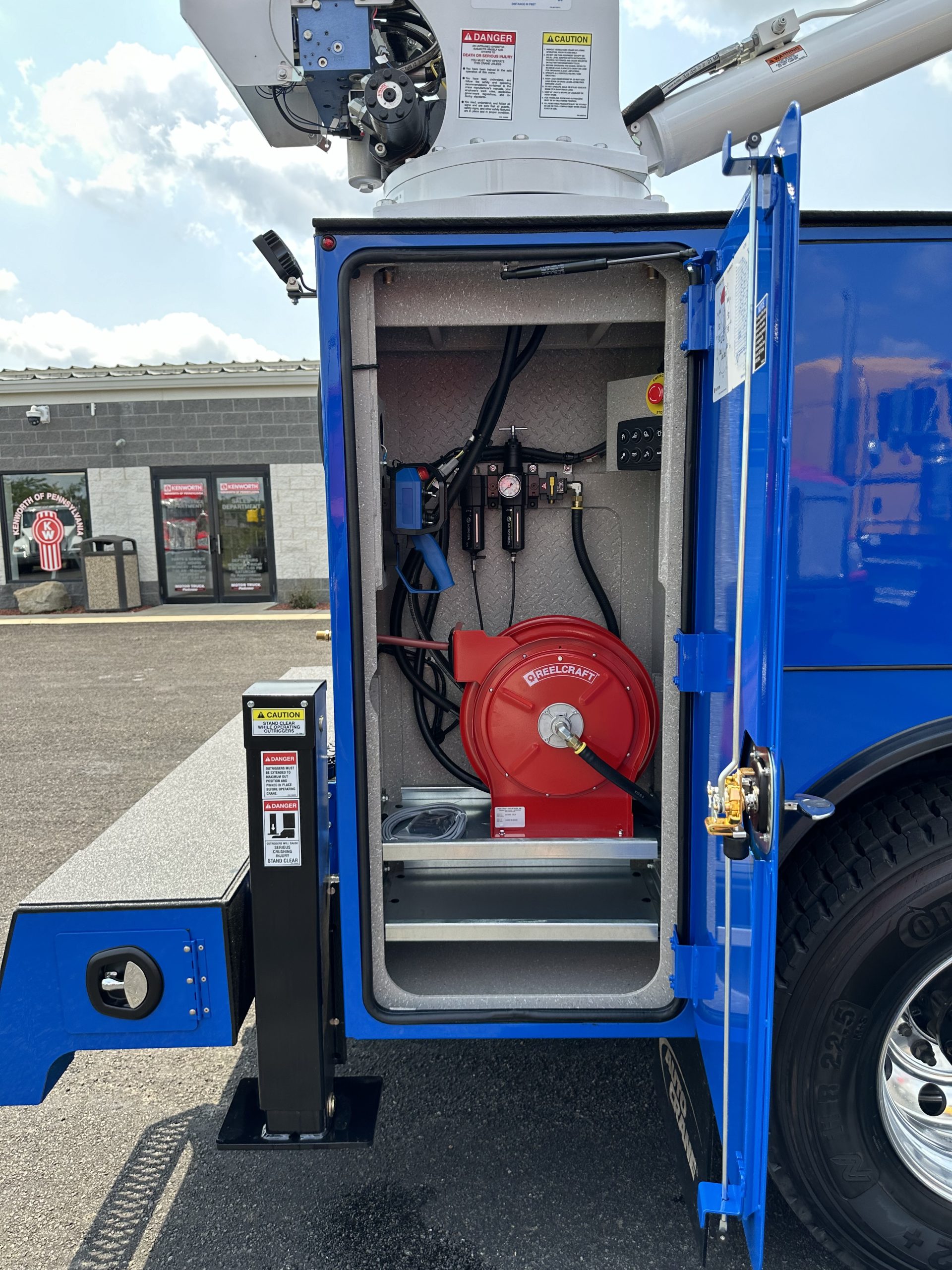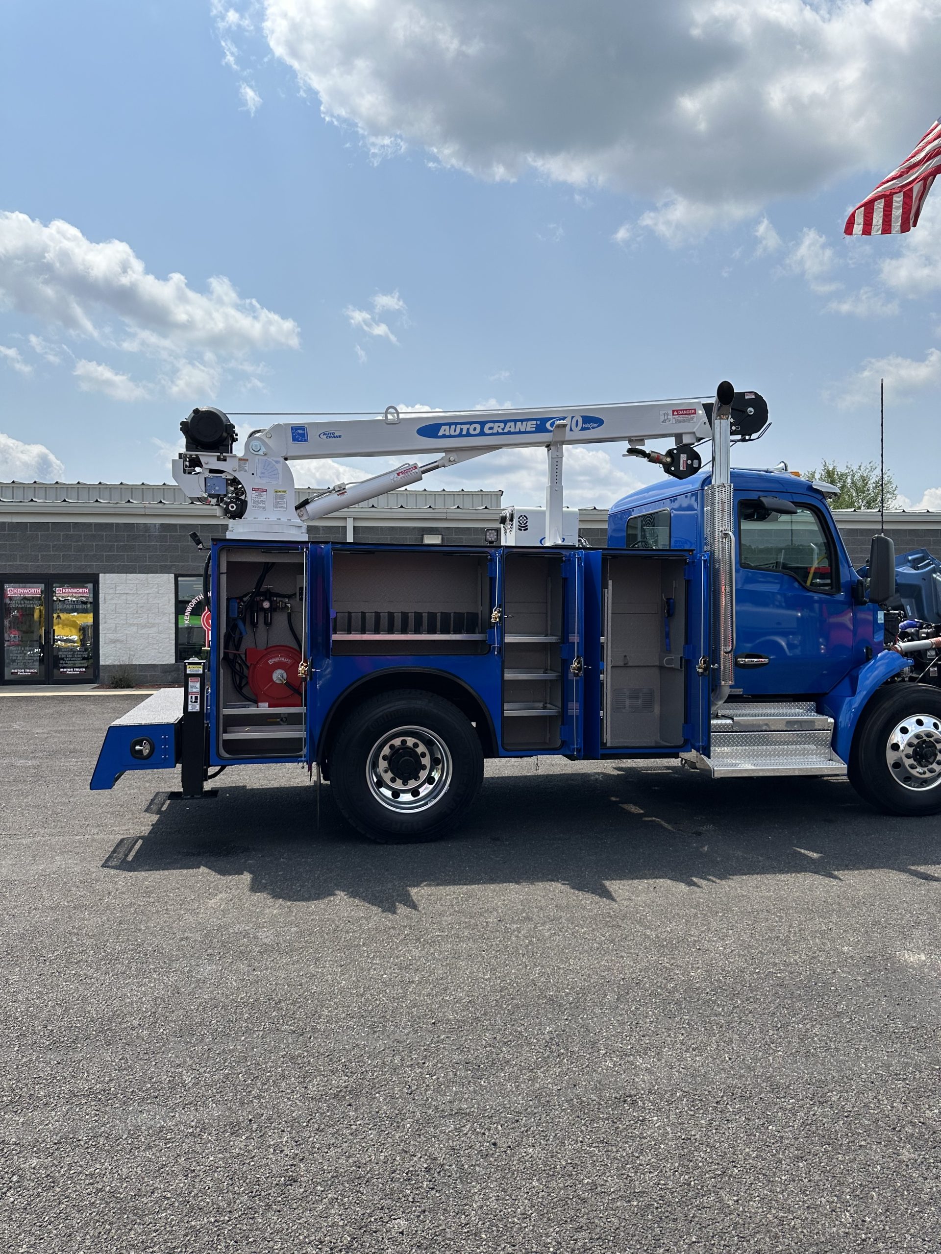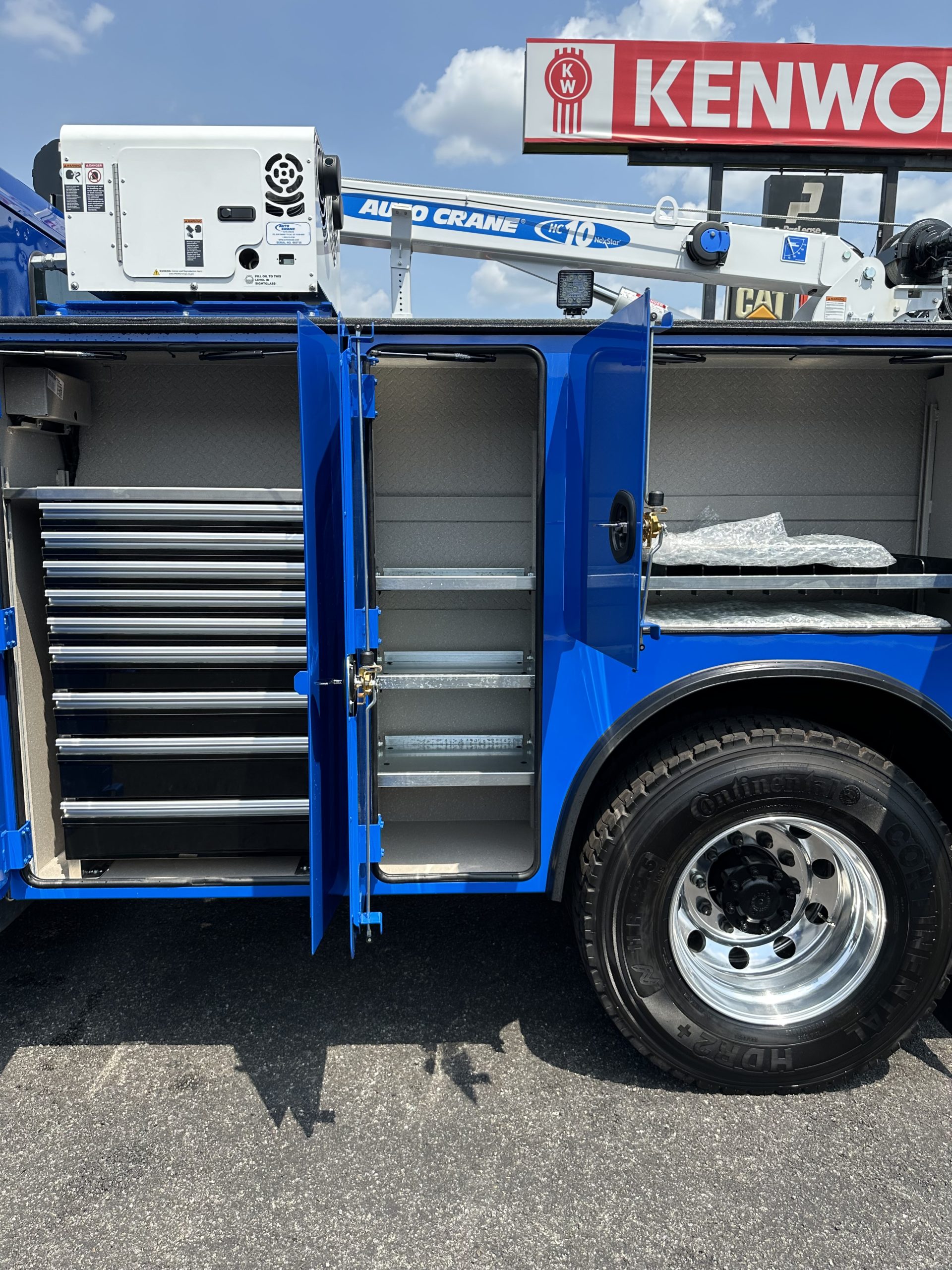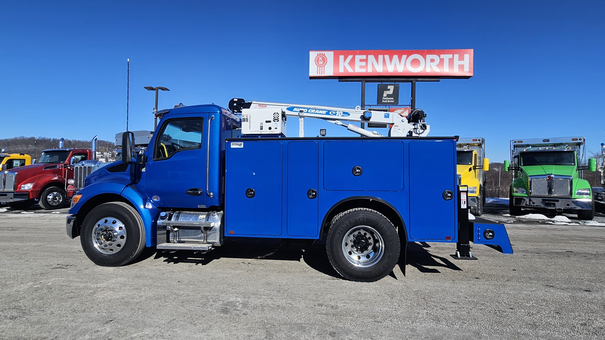2025 Kenworth T280 Service Truck, PX9 330/1000, Allison 3500 RDS Transmission, Dana locking rear axle, on Hendrickson Air Ride Suspension, Air ride Cab Suspension, (Blue color cab and body), Curry Supply Mechanics Body Titan 60- 11′ per Curry Supply spec sheet.