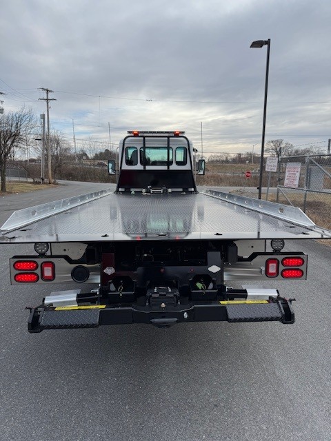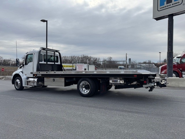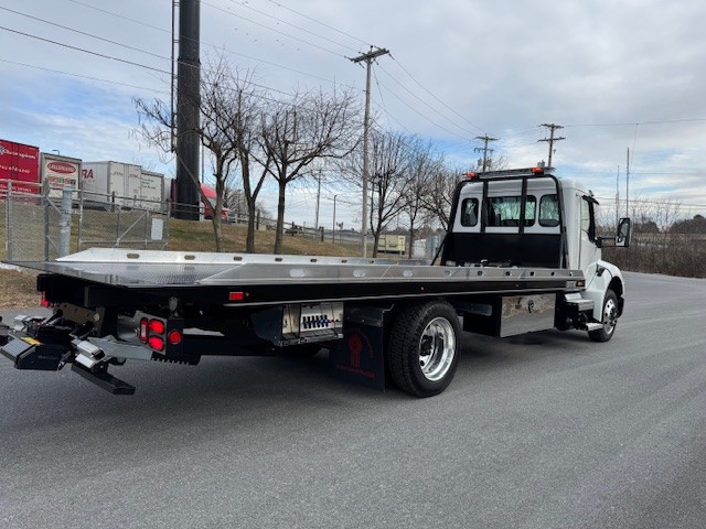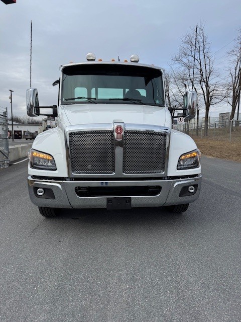 2026 Kenworth T280 26K Roll-Back Straight Truck, Paccar PX7 300 HP 660 Torque Engine, Allison 2500 RDS Transmission, Locking Rear Diff with Hendrickson HAS 210L Air Ride Rear Suspension, 255 Series Low Profile 22.5 Tires on Alcoa Aluminum Wheels with Dura-Bright finish on outboard surfaces, 50 Gallon Polished Aluminum Fuel Tank, Kenworth Air Ride Driver Seat with Two Man Bench Toolbox Rider Seat, Kenworth AM/FM/WB/USB/Bluetooth Radio, CB Installation Kit, 26″ Round Roof Mounted Air Horns, Stainless Steel Exterior Sunvisor, Dual LED Headlamp System, Backup Alarm, Century 12 Series LCG Roll-Back Body, 102″ Wide Steel Deck, 60″ Steel Tool Box with Stainless Steel Door, LED Worklights, Legend 10 Head LED Lightbar 61″, White Cab with Black Body.