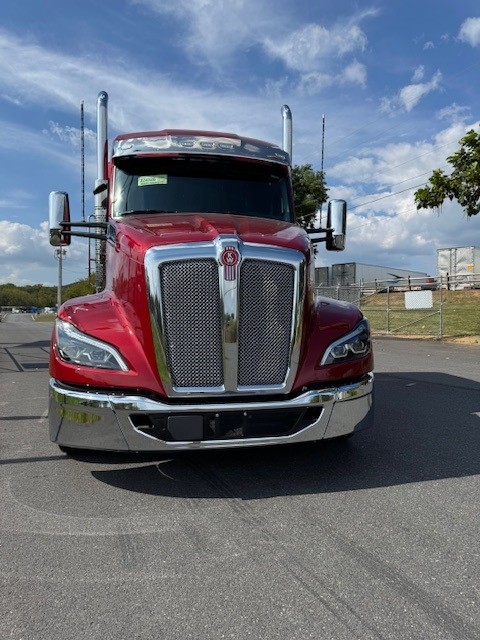 2026 Model Kenworth T680 76″ Mid Roof Sleeper Tractor, Split Fender Hood with exposed steps and tanks, Cummins X15 500HP 1850 Torque Engine, Eaton Endurant 12 Speed Automated Transmission, 12,640# Steer and 40K axle ratings, Axle Lock in Rear Rear Drive Axle, KW AG400L 4 bag rear suspension, Low Profile 22.5 Tires on all Alcoa Aluminum Wheels with Dura-Bright finish on outboard wheels, 100 and 135 Gal Polished Fuel Tanks with Polished 7″ Tank Straps, 30 Gal DEF Tank with Polished SS Cover, Dual Exhaust with Chrome Lower Elbows and 5″X54″ Tail Pipes, Davco 382 Fuel Filter, Slate Gray Diamond Interior with Black Carpet, Gray Heated Air Ride Driver and Rider Seats, Kenworth AM/FM/WB/USB Radio with Header Mounted CB, 1800 Watt Inverter, KW Aero Mirrors with Chrome Shells, LED Headlamp System, M1972 Coral Red,