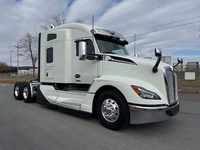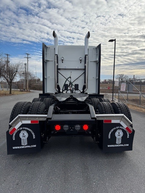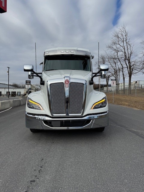 2026 T680 Mid Roof Sleeper Tractor, Paccar MX 13 510 HP-1850 Torque Engine, Paccar TX12 12 Speed Automated Transmission, 240″ Wheelbase, Dual Back of Sleeper Exhaust with 7″ X 48″ Tailpipes, All Bendix Air Disc Brakes, Meritor MT40-14X4 Rears with Locking Rear Rear Diff. Kenworth AG380 Rear Suspension, 11R22.5 Tires on All Alcoa Aluminum Wheels with Dura-Bright Finish on Outboard Wheels, Jost 24″ Sliding Low Lube Fifthwheel, 150 & 120 Gal Fuel Tanks with 27 Gal DEF Tank, Sleeper Doors with Sliding Windows, Slate Gray Diamond VIT Interior, Black Heated KW Leather Driver and Rider Seats, Refrigerator Freezer, TV Inst Package, Folding Upper Bunk, Rider Side Lower Storage Unit with Rotating Table, KW Radio and Nav System Compatible with Apple Carplay, CB Radio, Remote Keyless Entry, KW Aero Mirrors with Chrome Shells, Heated Chrome LH & RH Hood Mounted Mirrors, Stainless Steel Ext Sunvisor, KW LED Headlamp System, 2 Pair of Flush Work Lights on Back of Sleeper, White with Black Frame