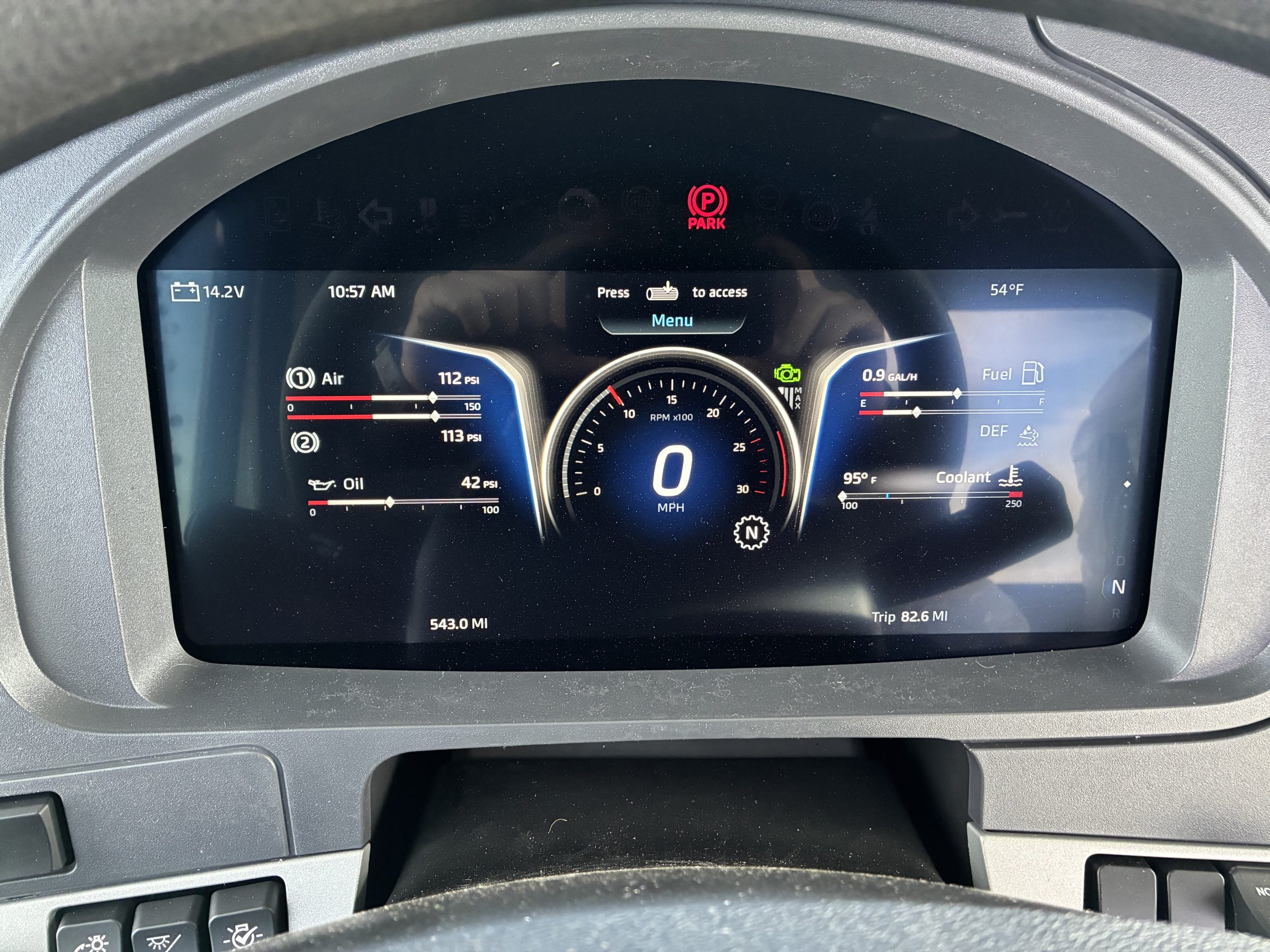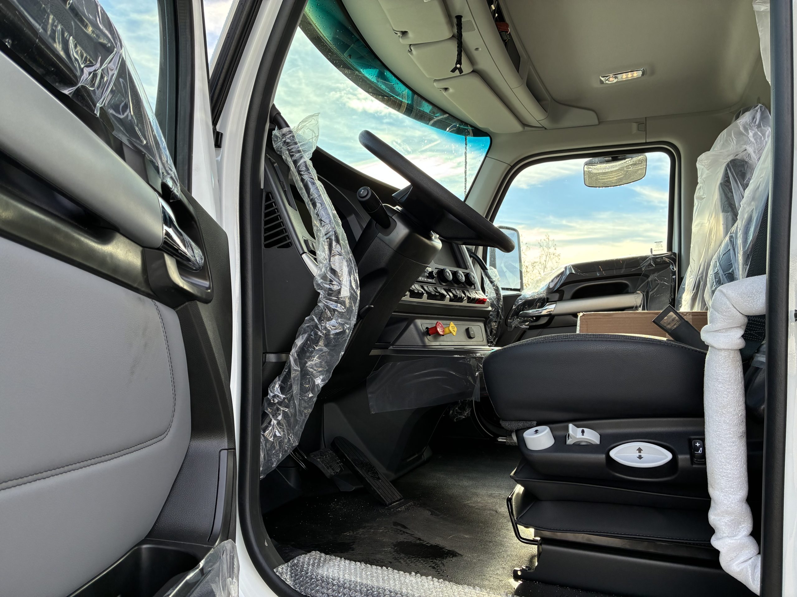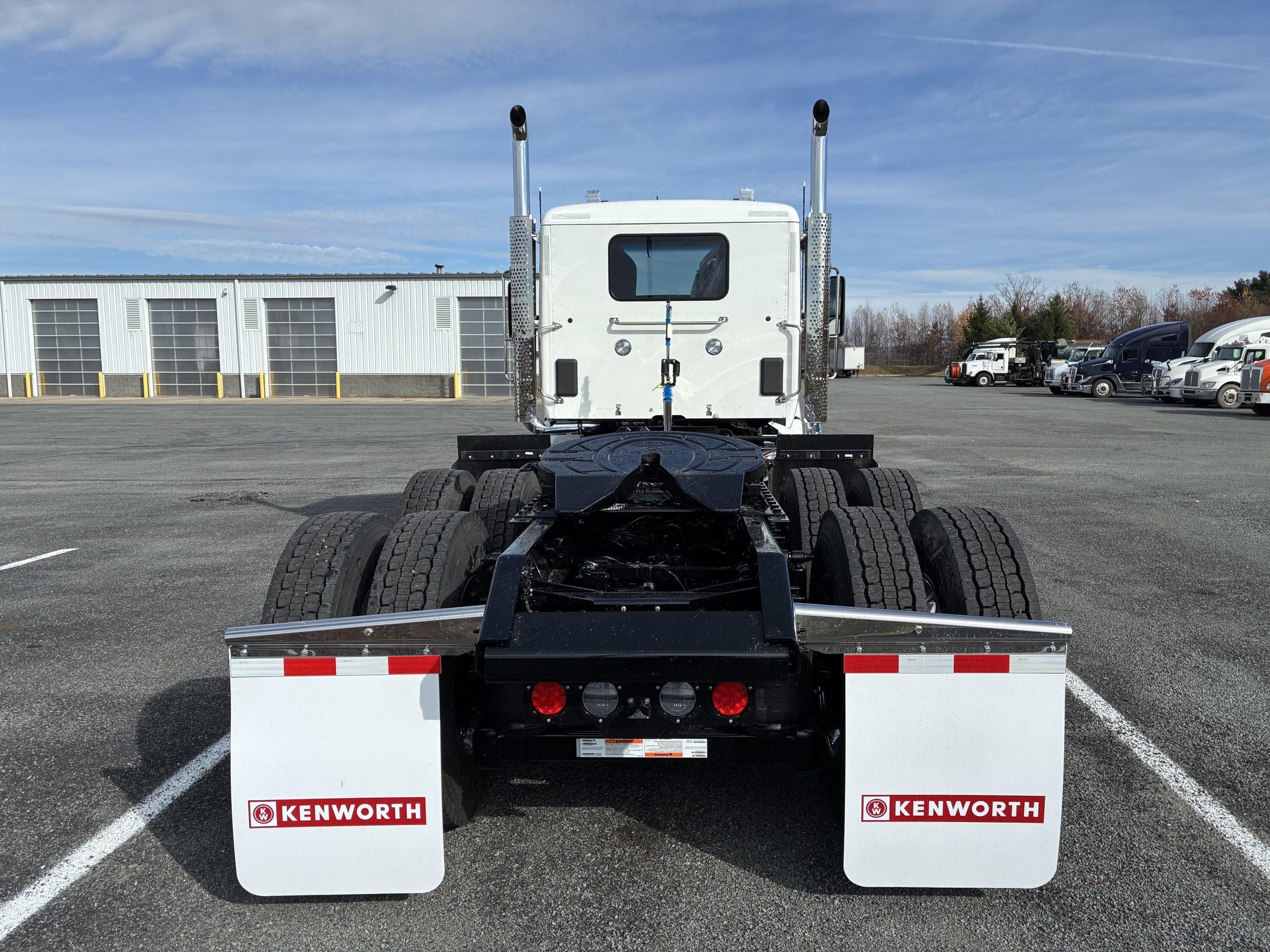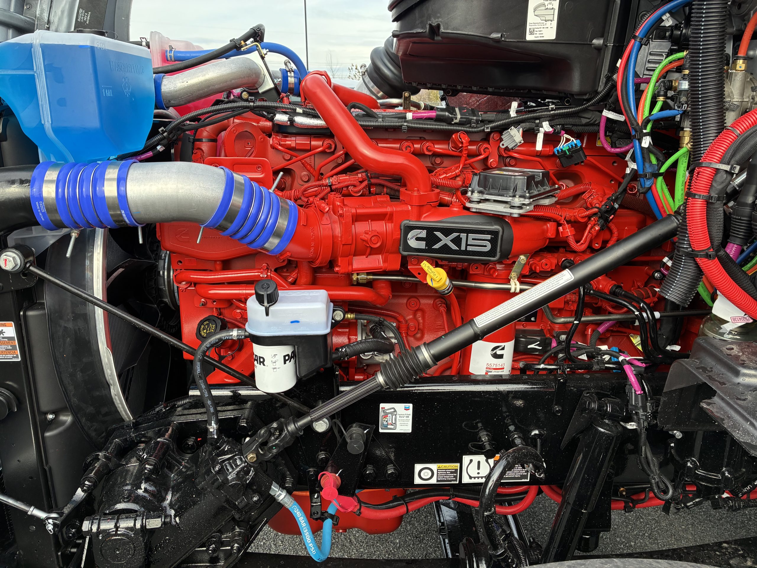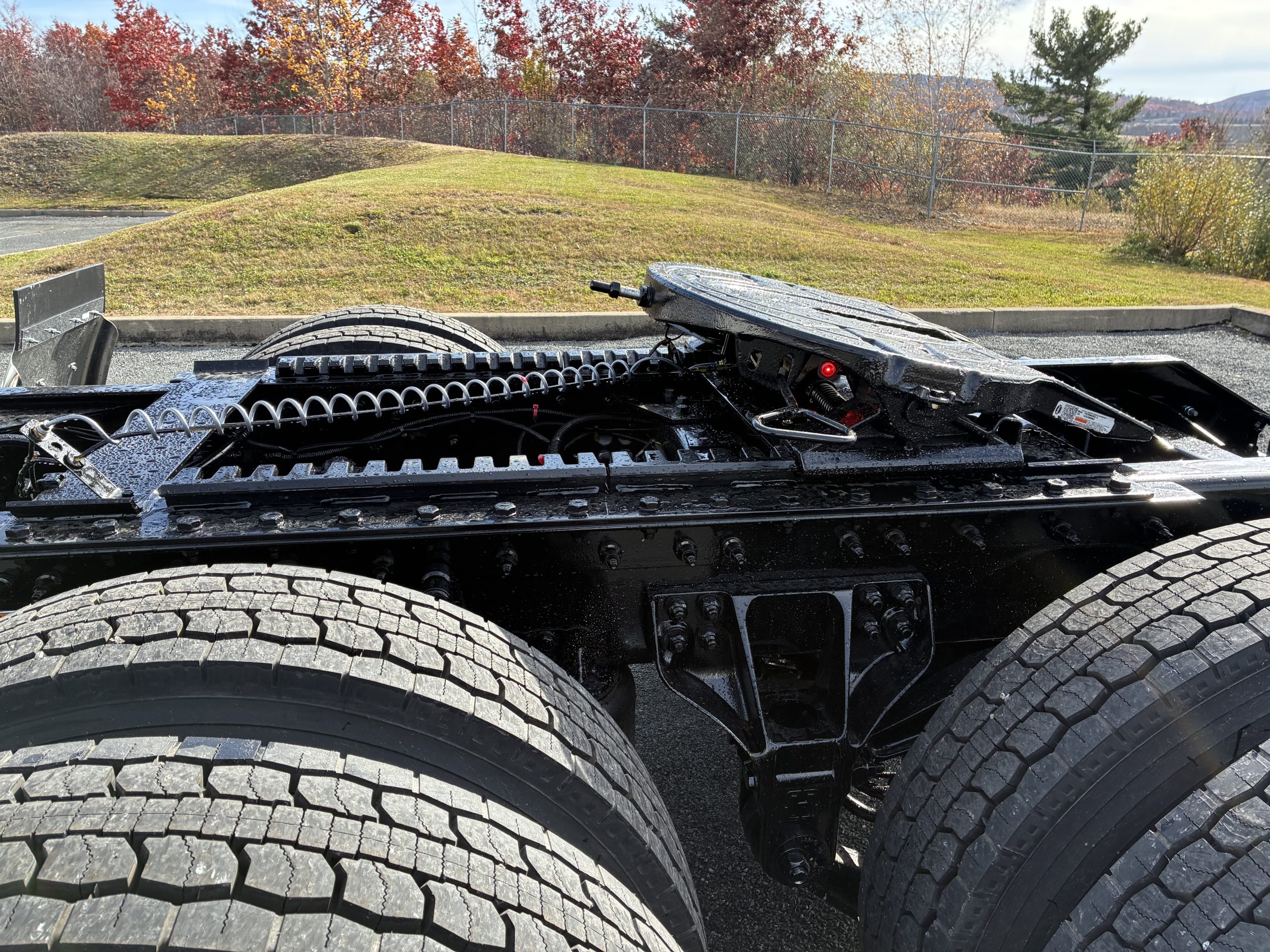 T880 HD Day Cab Tractor, Cummins X15 565 HP 1,850 Torque Engine, Eaton Endurant XD 18 Speed Automated Transmission, Dual Exhaust, Davco 382 Fuel Filter, 14,320 Front and 46K Rear Axle Ratings, Dana 46K Rears with Dual Locking Diffs and Separate Switches for Each Axle and the Power Divider, All Bendix Air Disc Brakes, 11R24.5 Tires on all Alcoa Aluminum Wheels with DuraBright Finish on Outboard Wheels, Tapered Chrome Steel Bumper, Huck Bolted Frame, Holland FW35 36″ Sliding Fifthwheel, 100 Gal Fuel and 120 Split Fuel Hydraulic Polished Tanks with Polished Stainless Steel 7″ HD Straps, 23.8 Gal DEF Tank with Polished Stainless Steel Cover, Slate Gray Vantage Interior with Black DuraCloth Driver Air Ride Driver Seat and DuraCloth Toolbox Rider Seat, KW AM/FM/WB/USB/Bluetooth Radio, CB Installation Kit, Dual 23″ Stainless Roof Mounted Air Horns, KW Aero Mirrors with Chrome Shells, Stainless Steel Exterior Sunvisor, Back Up Alarm, Zinc Phosphate Frame Rail Paint, White with Black Frame.