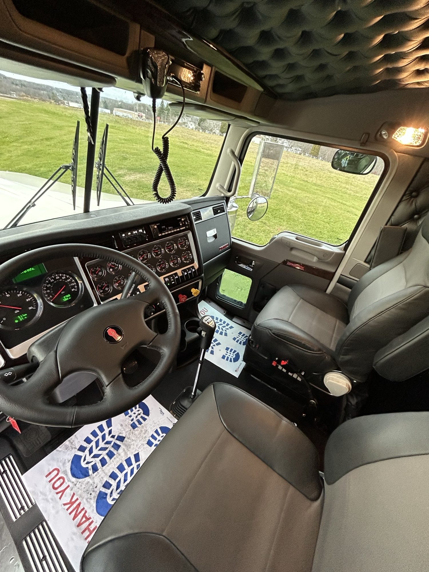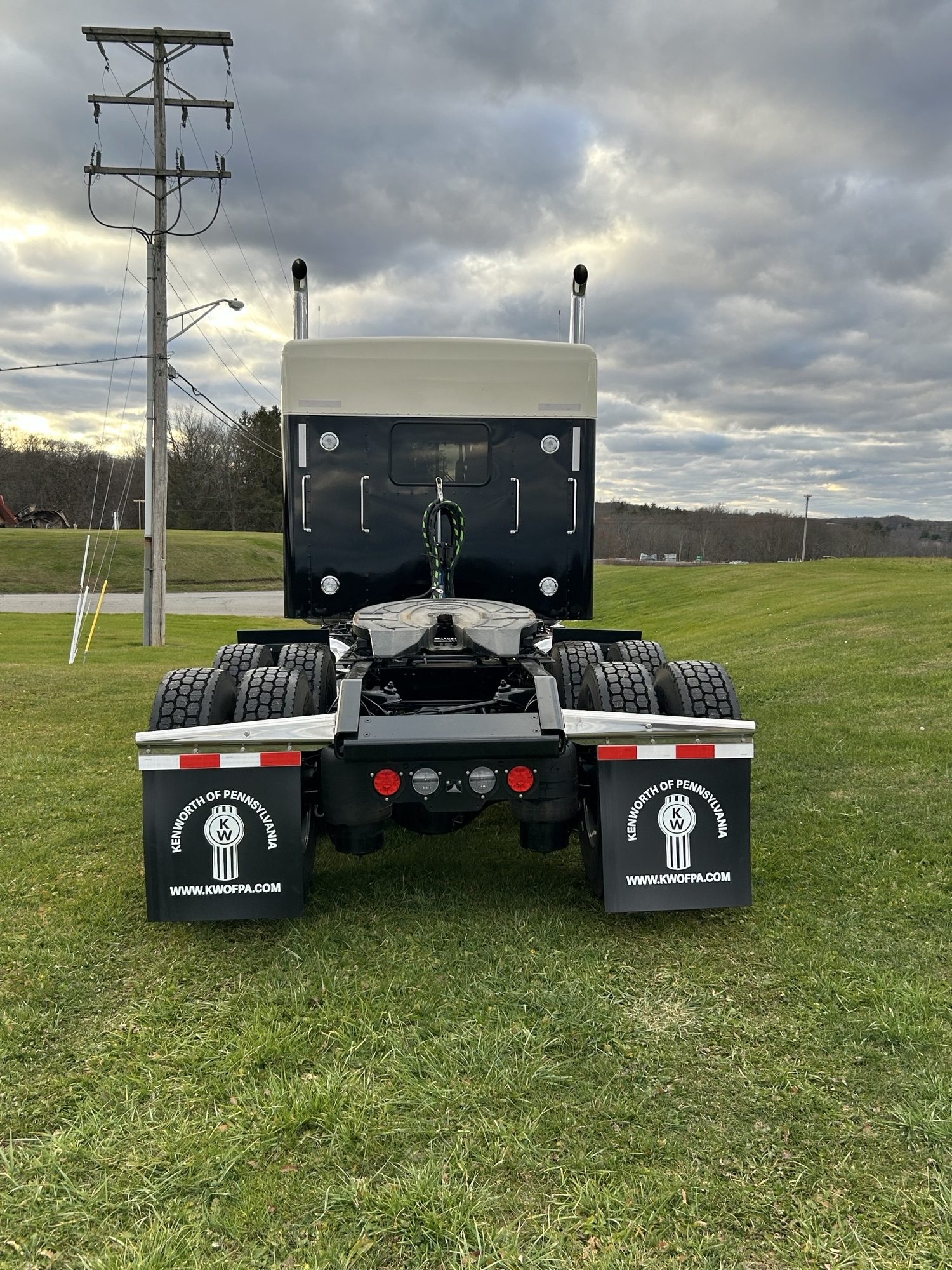 2026 W900L 3 Color 72 Flat Top Aerocab Sleeper Tractor, Cummins X15 565 HP 1850 Torque Engine, Eaton 18 Speed Manual Transmission, Dual Exhaust, Davco 382 Fuel Filter, 13,200 and 40,000 Axle Ratings, Dana 40K Rears with Locking Rear Rear Axle, KW Ag400L 4 Bag Air Ride Suspension, 11R22.5 Tires on All Alcoa Aluminum Wheels with Dura-Bright Finish on outboard locations, 24″ Holland Sliding Fifthwheel, 110 & 150 Gal Polished Fuel Tanks with 7″ Polished Stainless Steel Straps, 23.8 Gal DEF Tank with Polished Stainless Steel Cover, Sleeper Doors with Sliding Windows, Espar Bunk Heater, Jet Black Diamond VIT Interior, KW Air Cushion Plus Heated Leather Driver and Rider Seats, Refrigerator Freezer, TV Installation Package, KW AM/FM/WB/USB/Bluetooth XM Radio, Bearcat CB Radio, Remote Keyless Entry with Two Key Fobs, Dual Moto Mirrors, Rear Sleeper Window, Stainless Steel Exterior Sunvisor, 2nd 7 Way Plug at rear of Sleeper wired to 3 Dash Switches, White-Red Fire-Black with Black Frame.