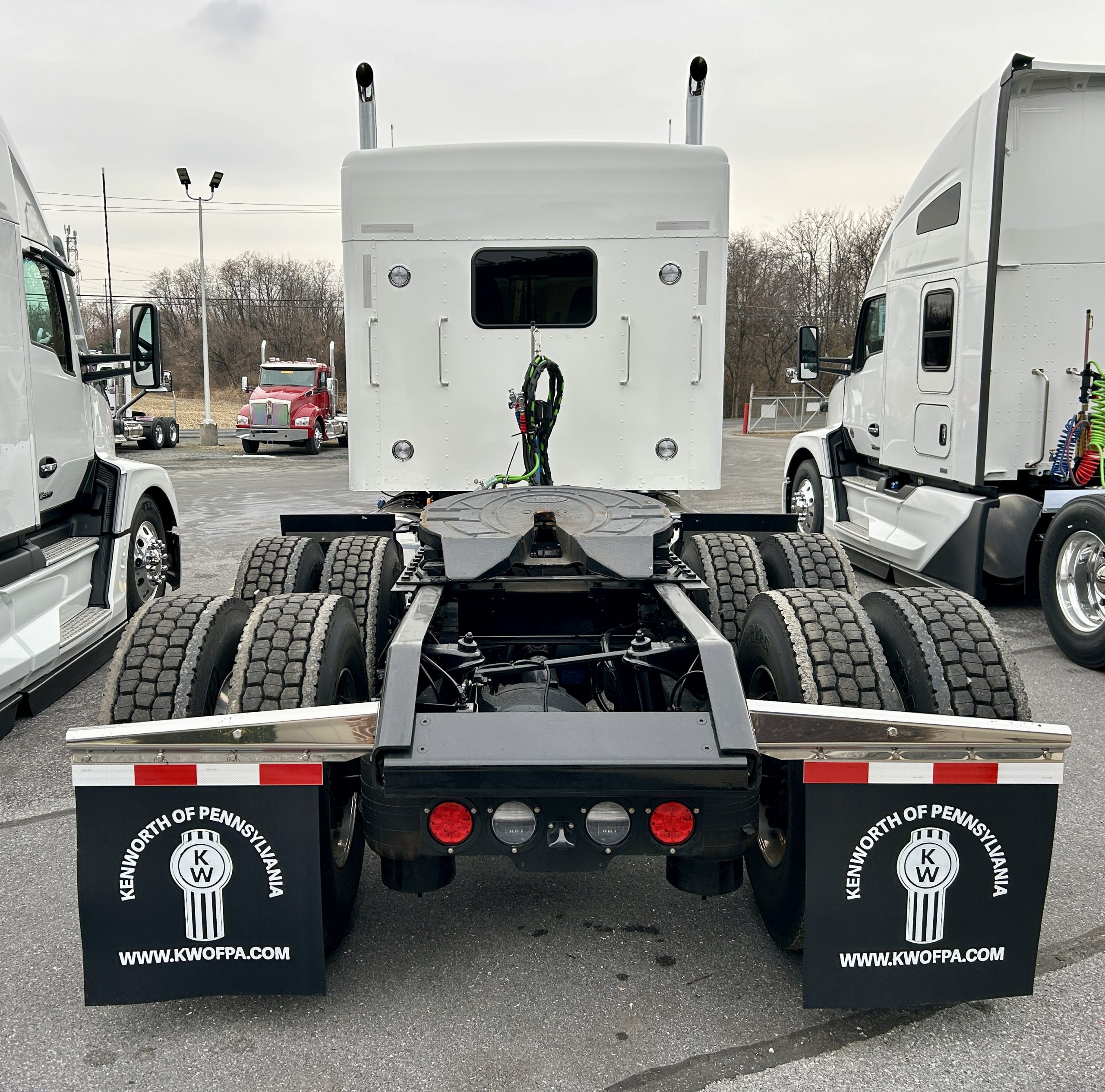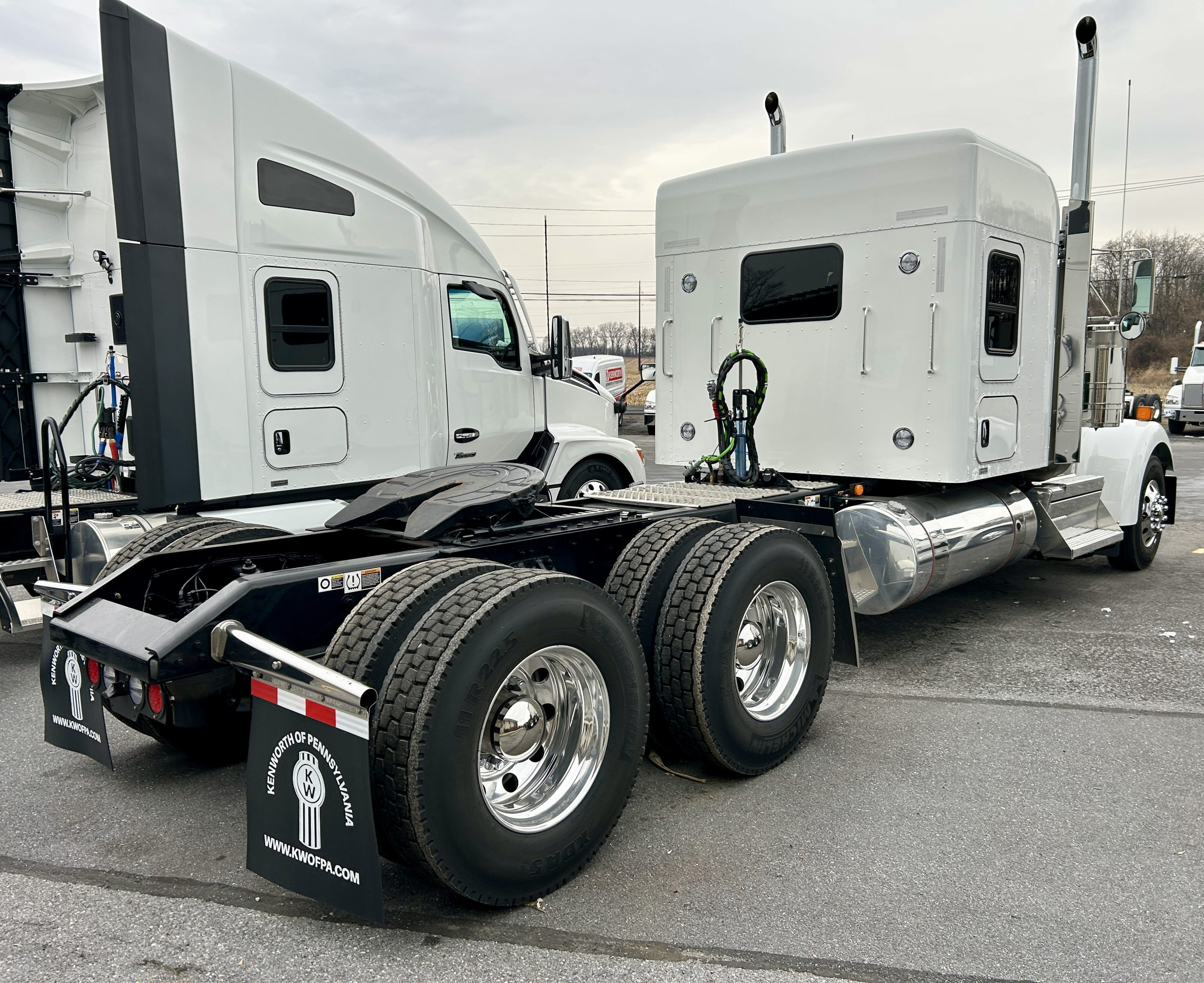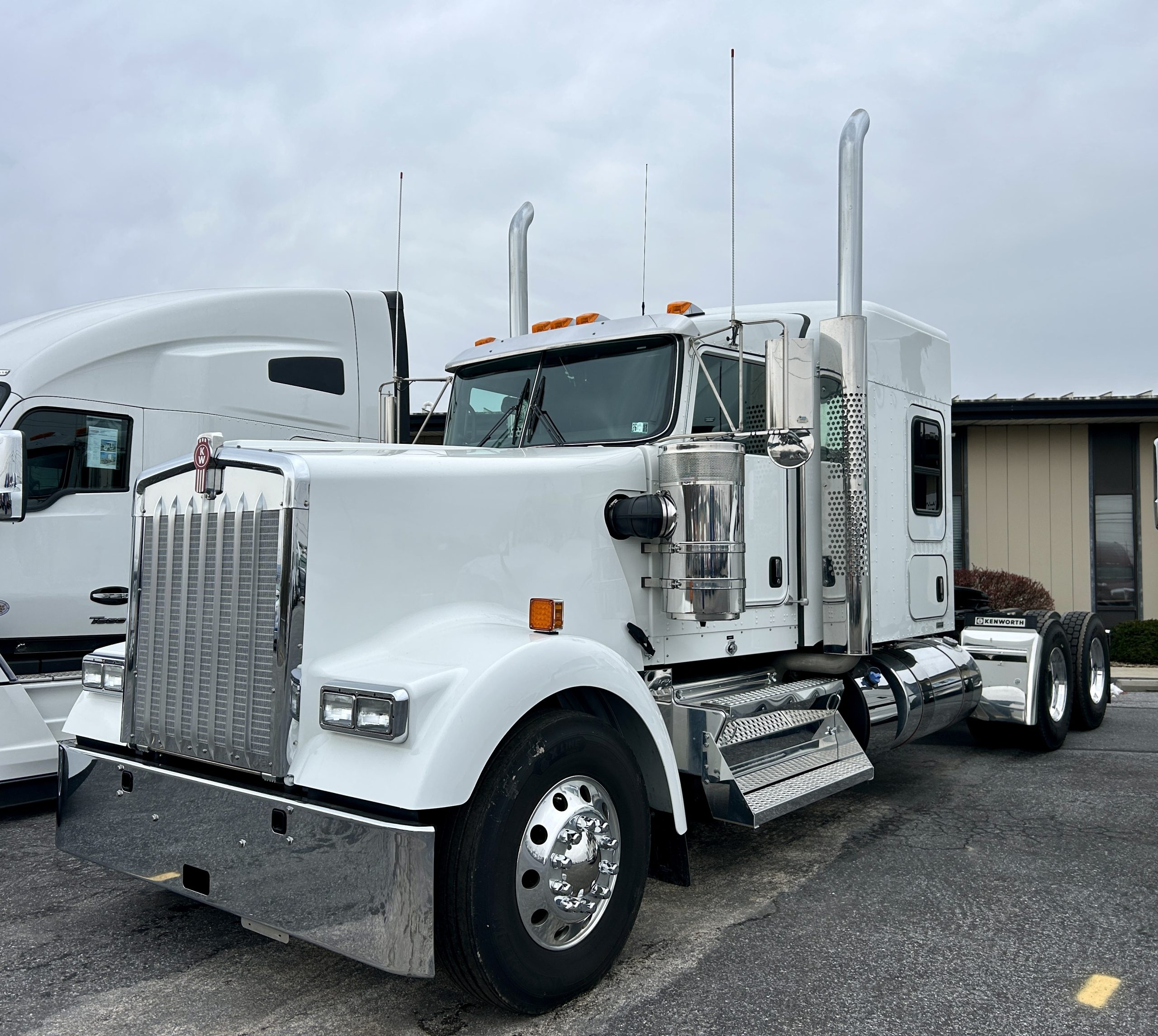 This W900L has a 72” Flat Top Aerocab Sleeper. Vehicle Specs: • Engine: Cummins X15 565 HP 1850 Torque Engine • Transmission: Eaton 18 Speed Manual Transmission • Mileage: 0 • Wheel Base: 270” Features & Equipment: • KW Ag400L 4 Bag Air Ride Suspension • 24″ Holland Sliding Fifth Wheel • 110 & 150 Gal Polished Fuel Tanks with 7″ Polished Stainless Steel Straps • Sleeper Doors with Sliding Windows • KW Air Cushion Plus Heated Leather Driver and Rider Seats • Stainless Steel Exterior Sunvisor • White with Black Frame