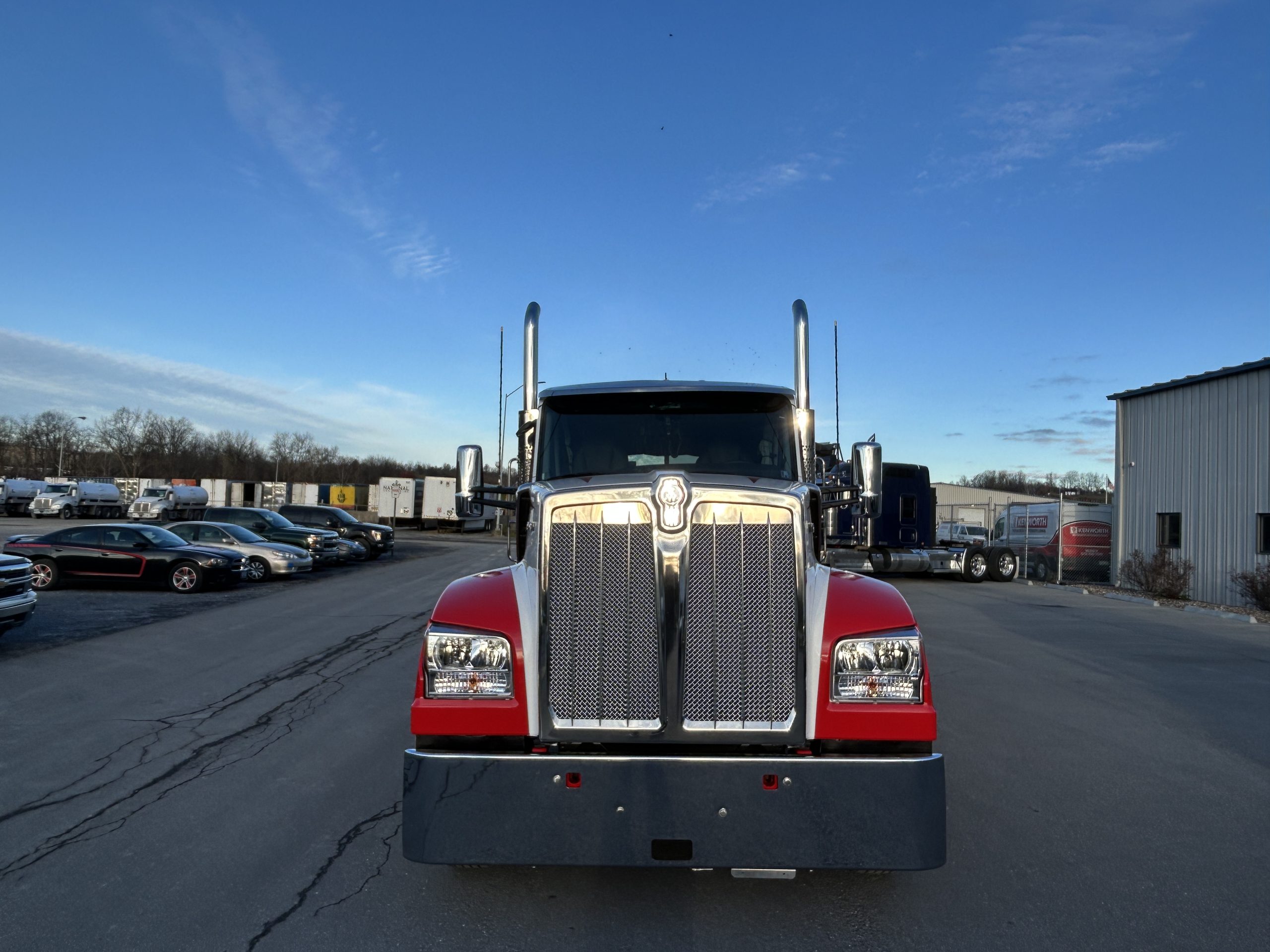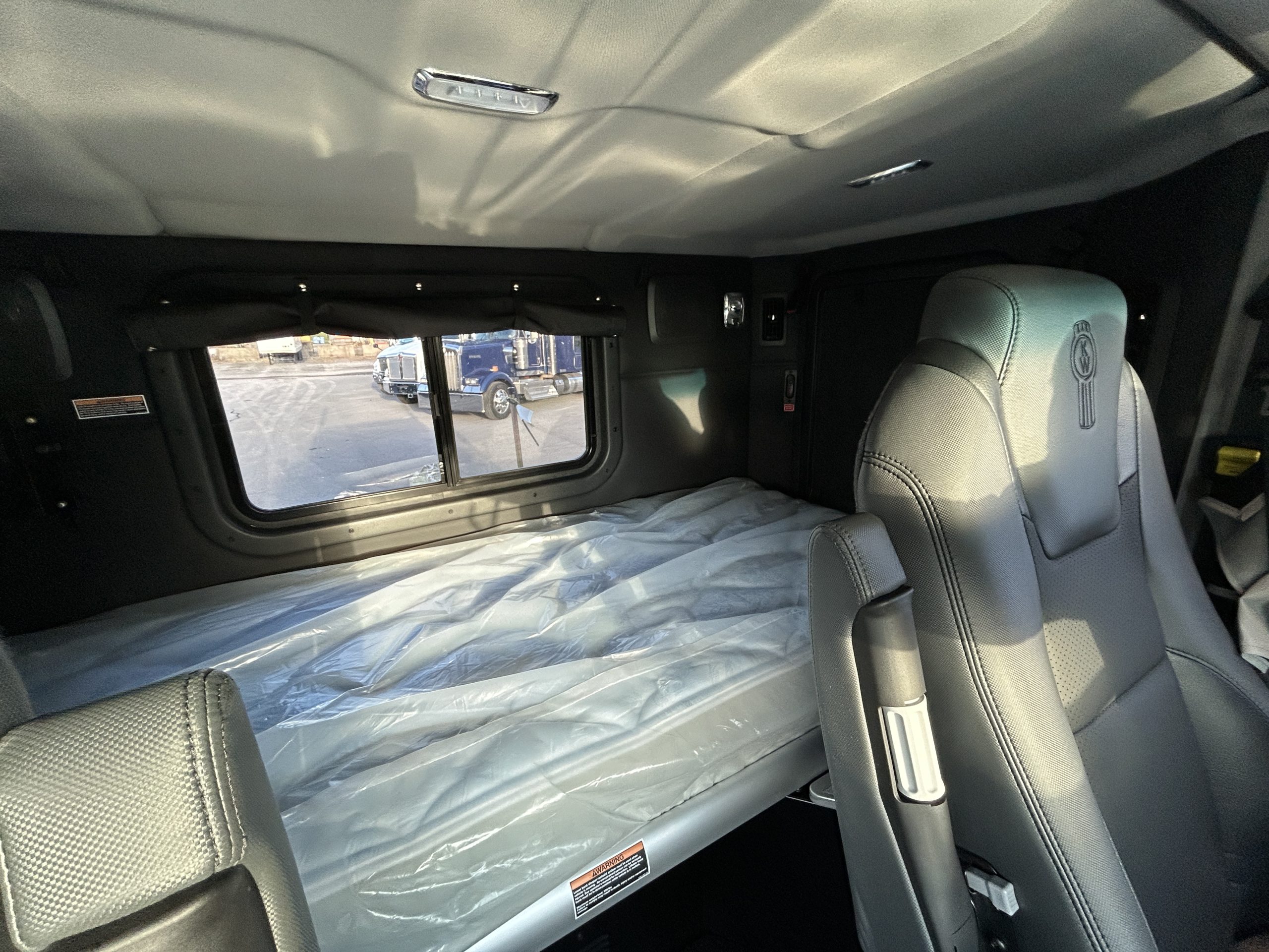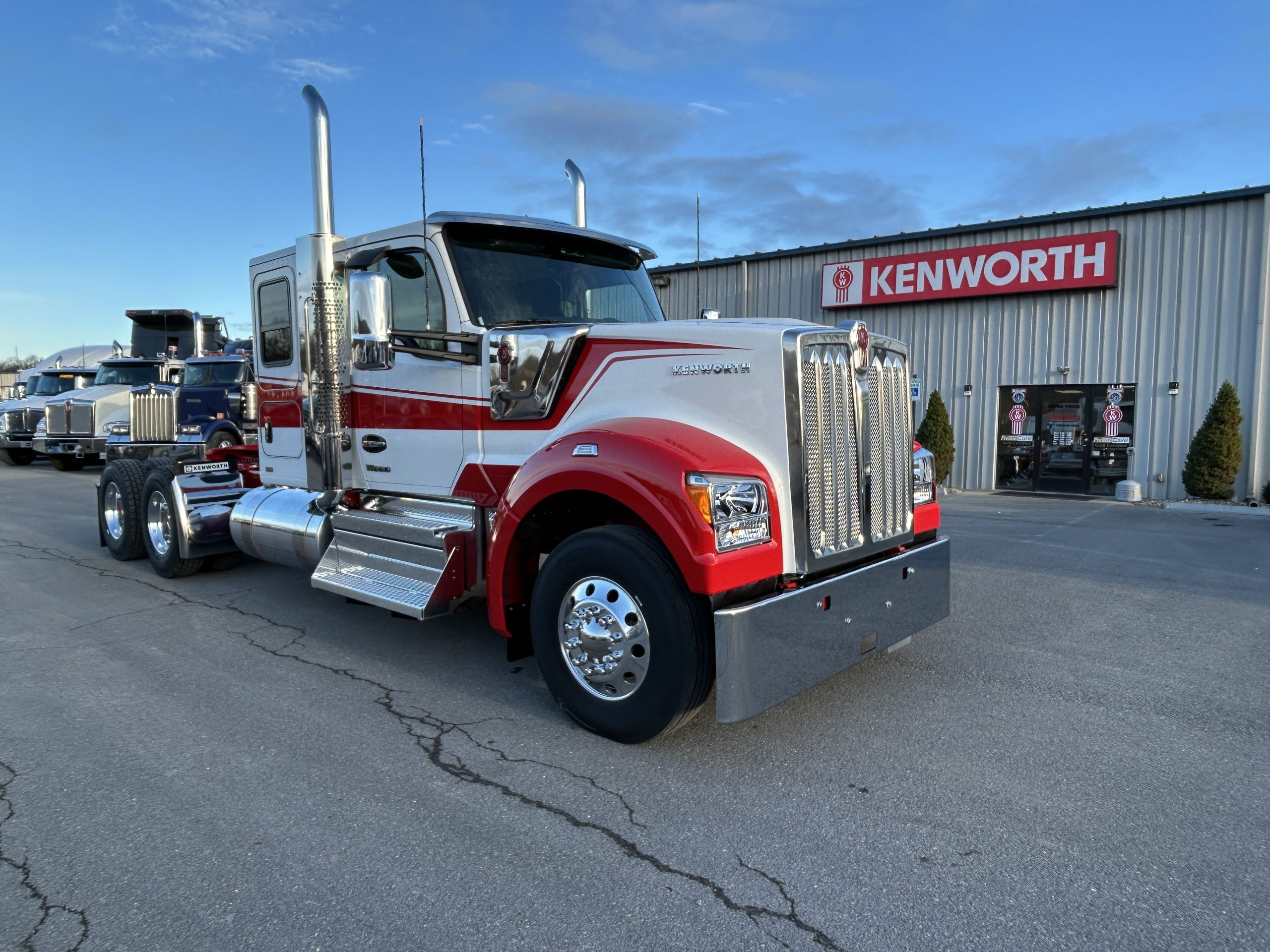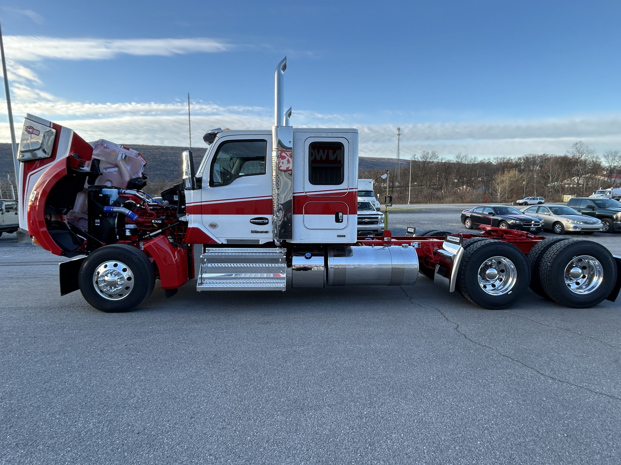 This W990 features a 52” Flat Top Sleeper with a Slate Gray Vantage Interior and is a head turner. Vehicle Specs: • Engine: Cummins X15 565 HP 1850 Torque Engine • Transmission: Eaton 18 Speed Manual Transmission • Mileage: 0 • Wheel Base: 250” Features & Equipment: • Dual Locking Rear Diffs with Separate Switches For Each Axle and Power Divider • 30″ Hogebuilt Stainless Steel Quarter Fenders • 30 Gal DEF Tank with Polished Stainless Steel Cover • Rear Sleeper Window • White with Coke Red Color Stripes and Red Frame