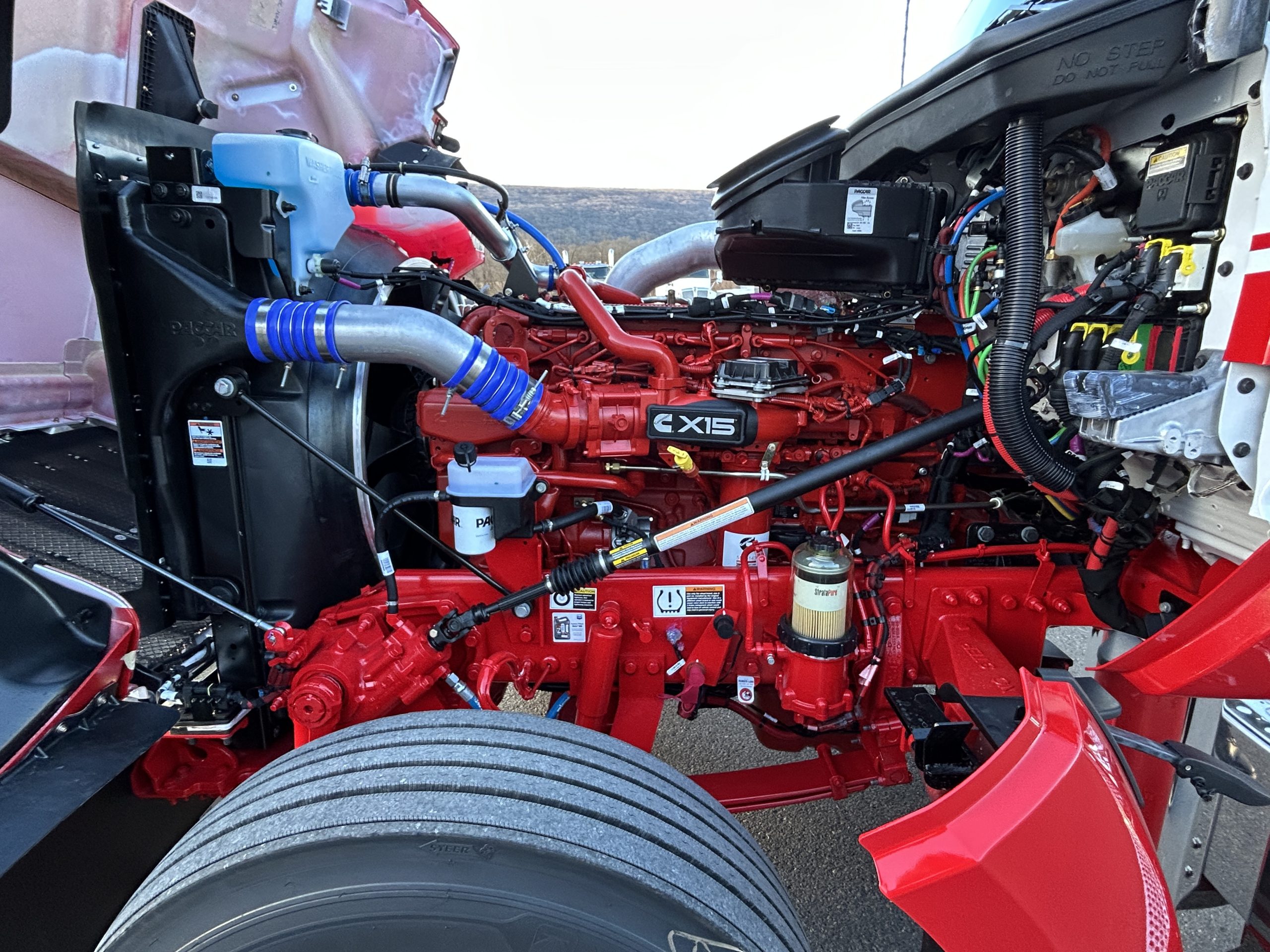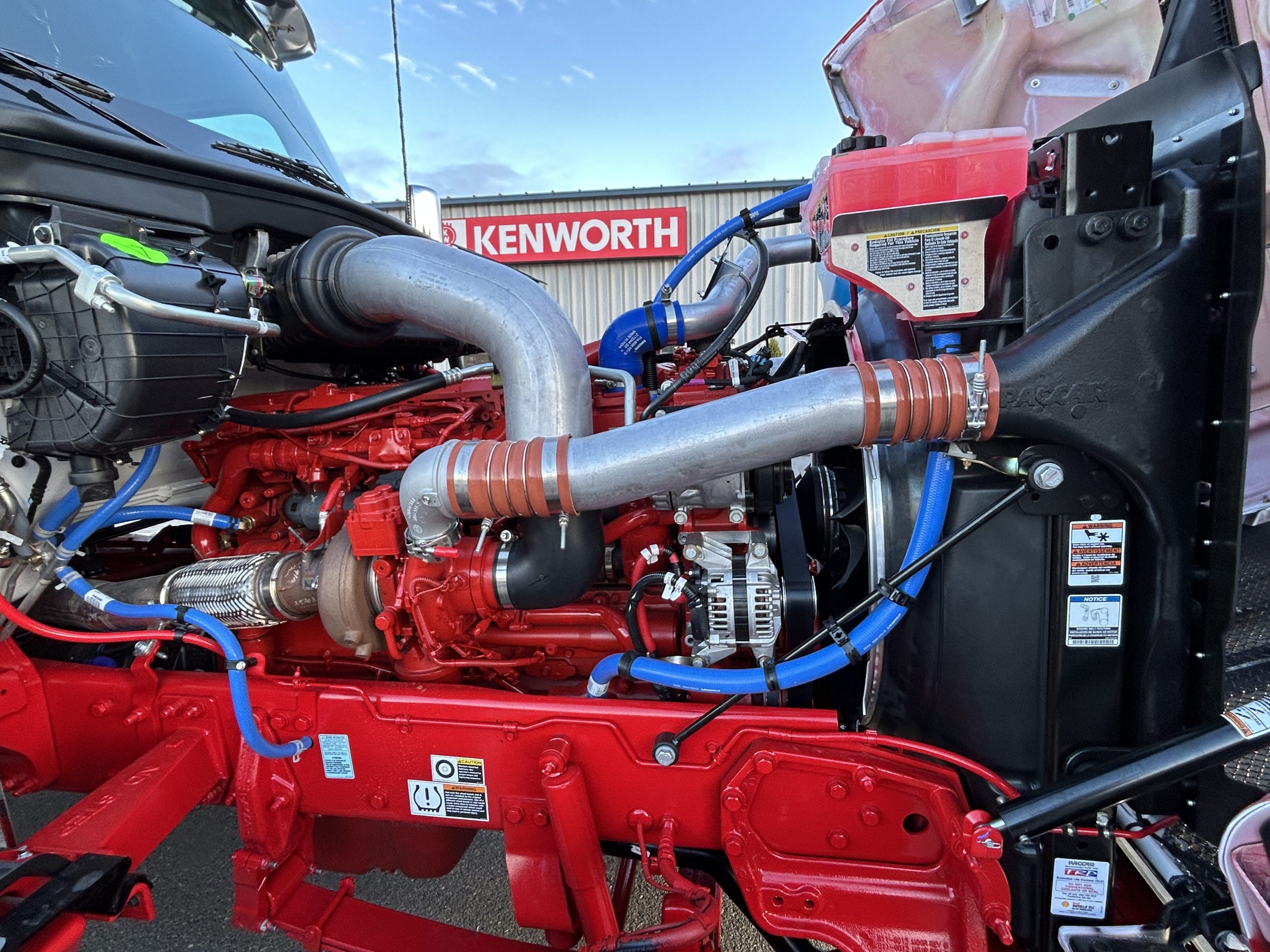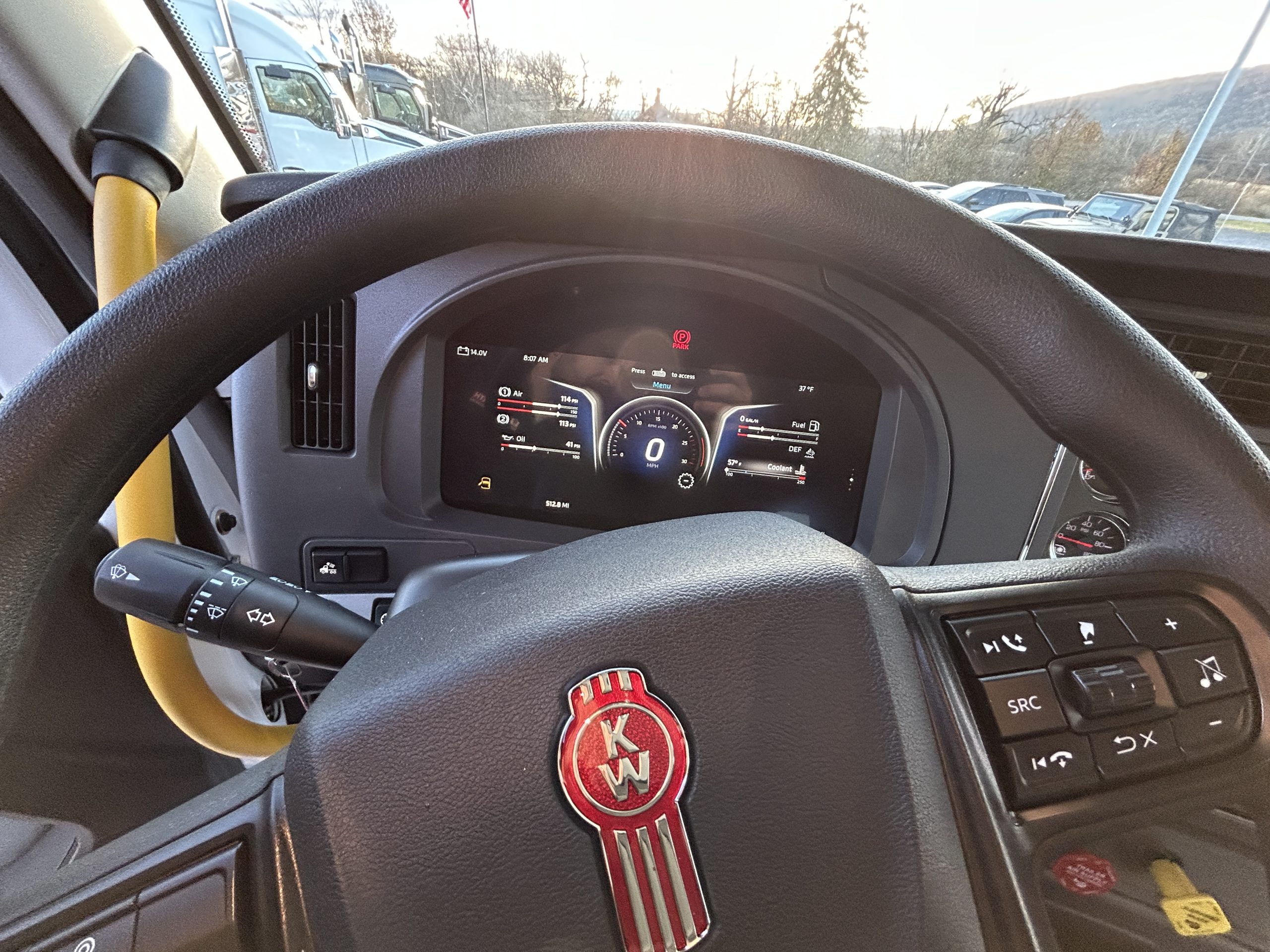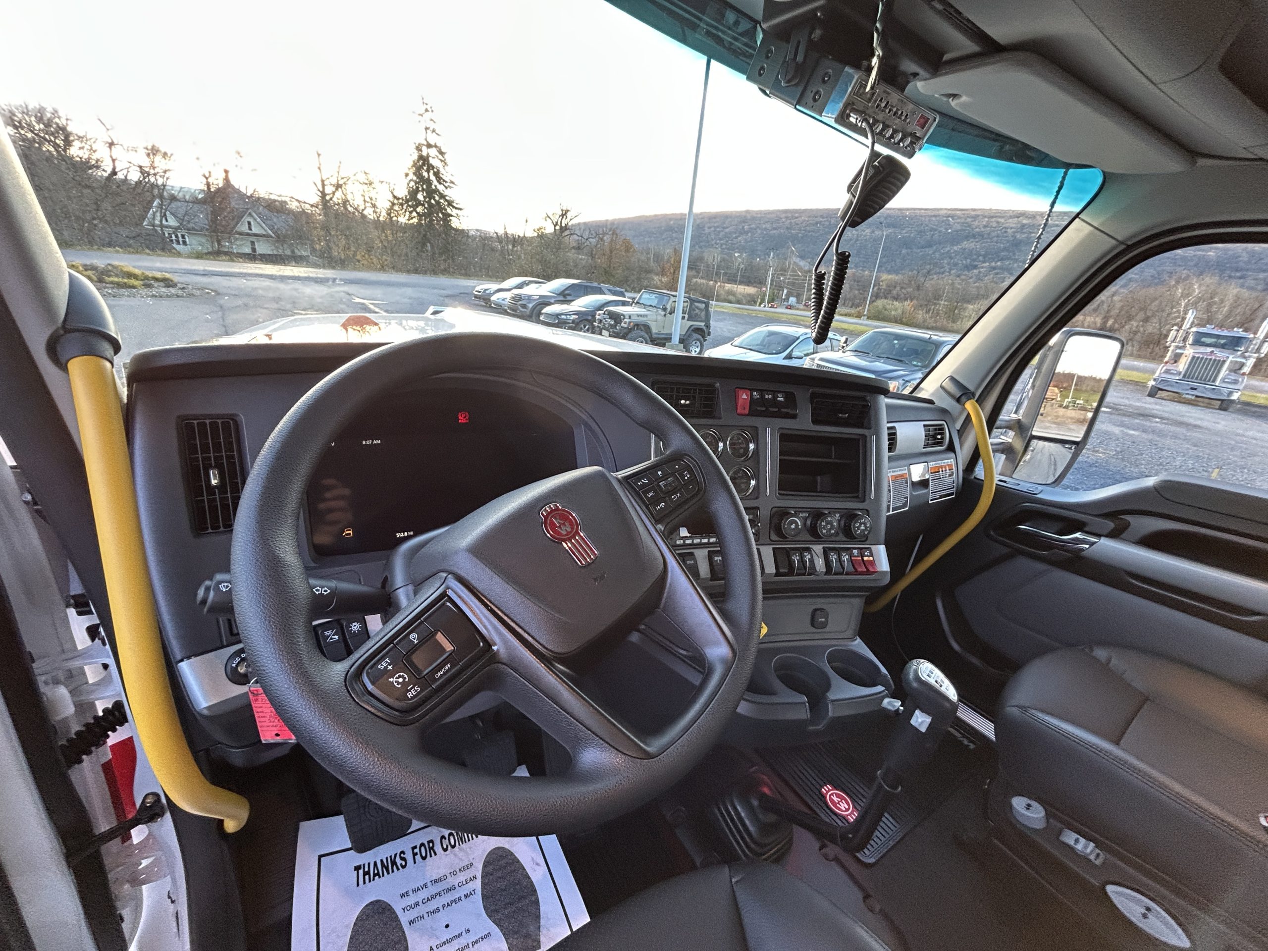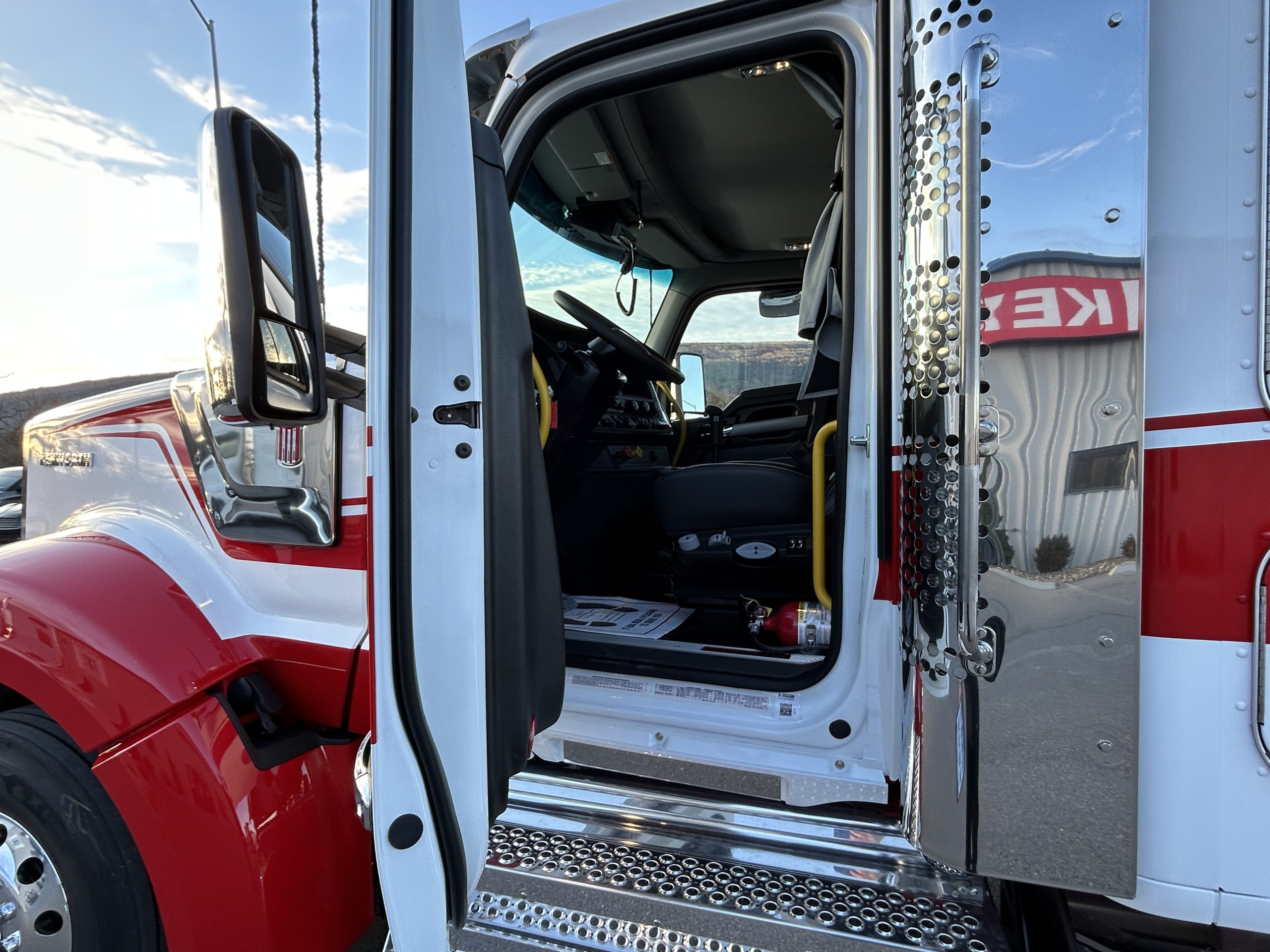 This W990 features a 52” Flat Top Sleeper with a Slate Gray Vantage Interior and is a head turner. Vehicle Specs: • Engine: Cummins X15 565 HP 1850 Torque Engine • Transmission: Eaton 18 Speed Manual Transmission • Mileage: 0 • Wheel Base: 250” Features & Equipment: • Dual Locking Rear Diffs with Separate Switches For Each Axle and Power Divider • 30″ Hogebuilt Stainless Steel Quarter Fenders • 30 Gal DEF Tank with Polished Stainless Steel Cover • Rear Sleeper Window • White with Coke Red Color Stripes and Red Frame