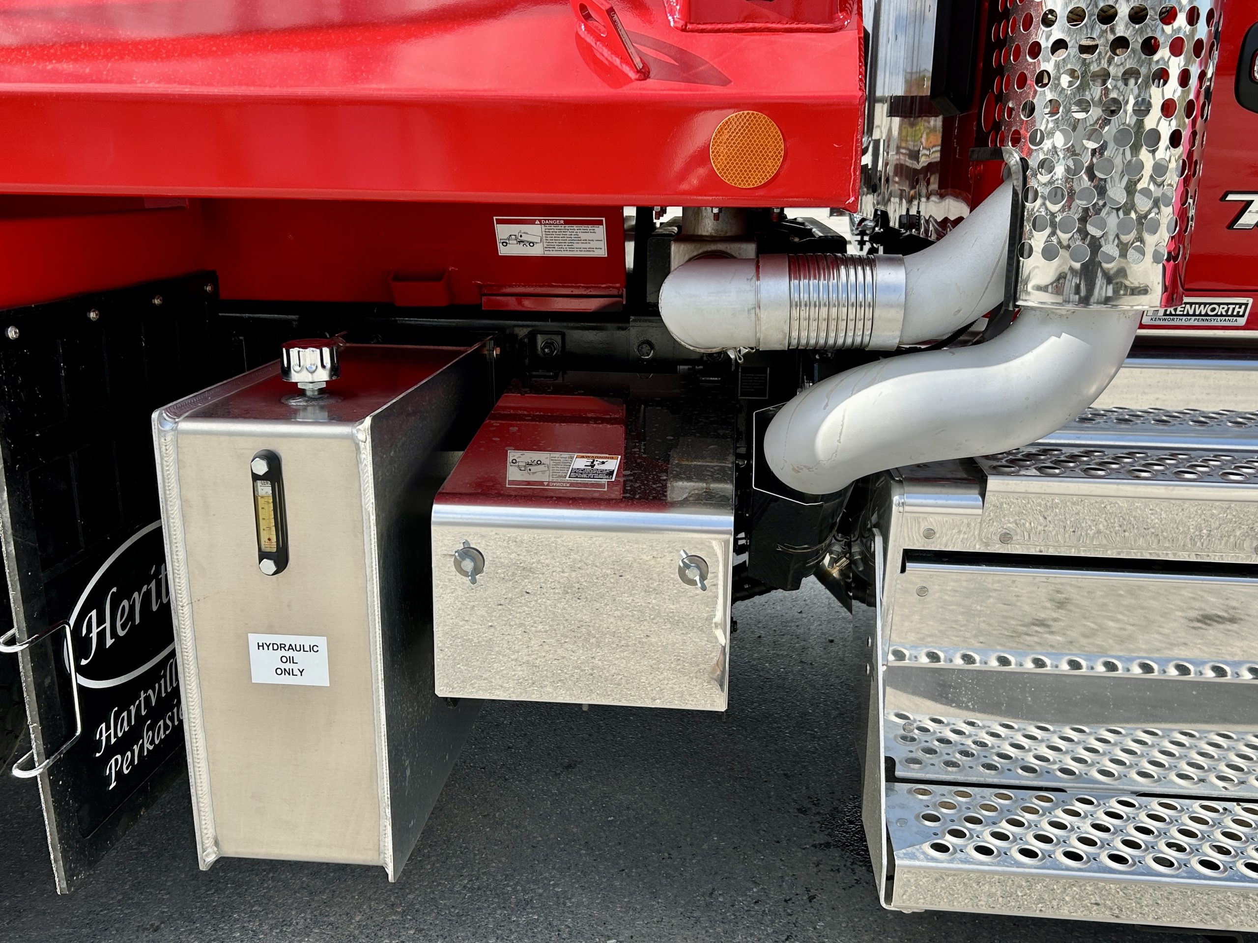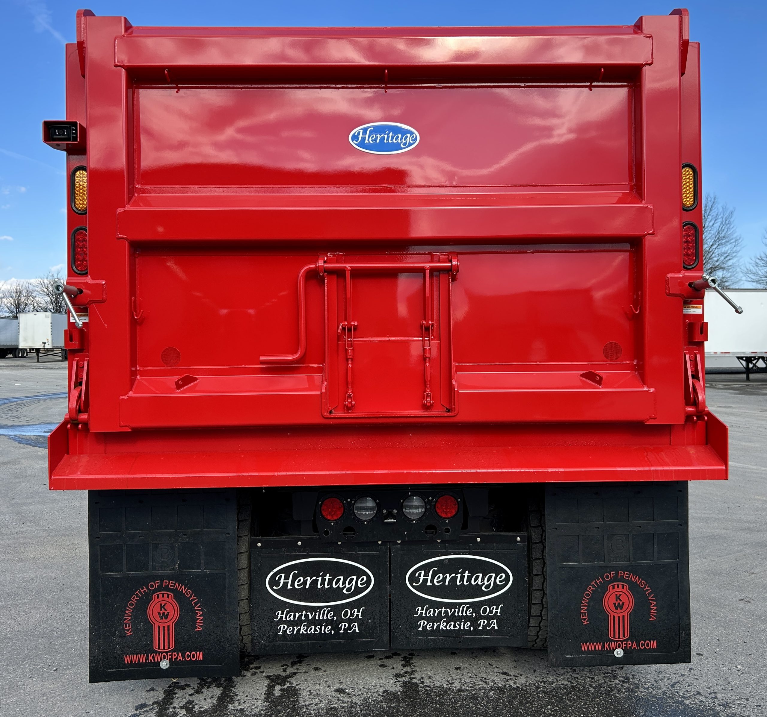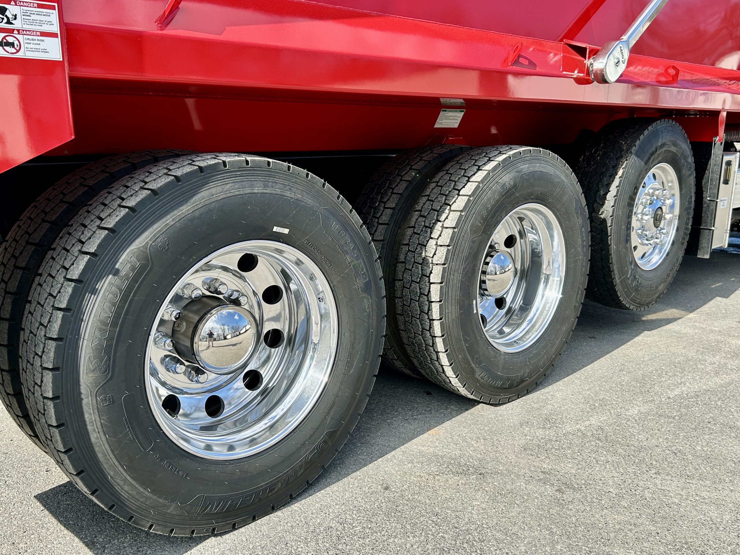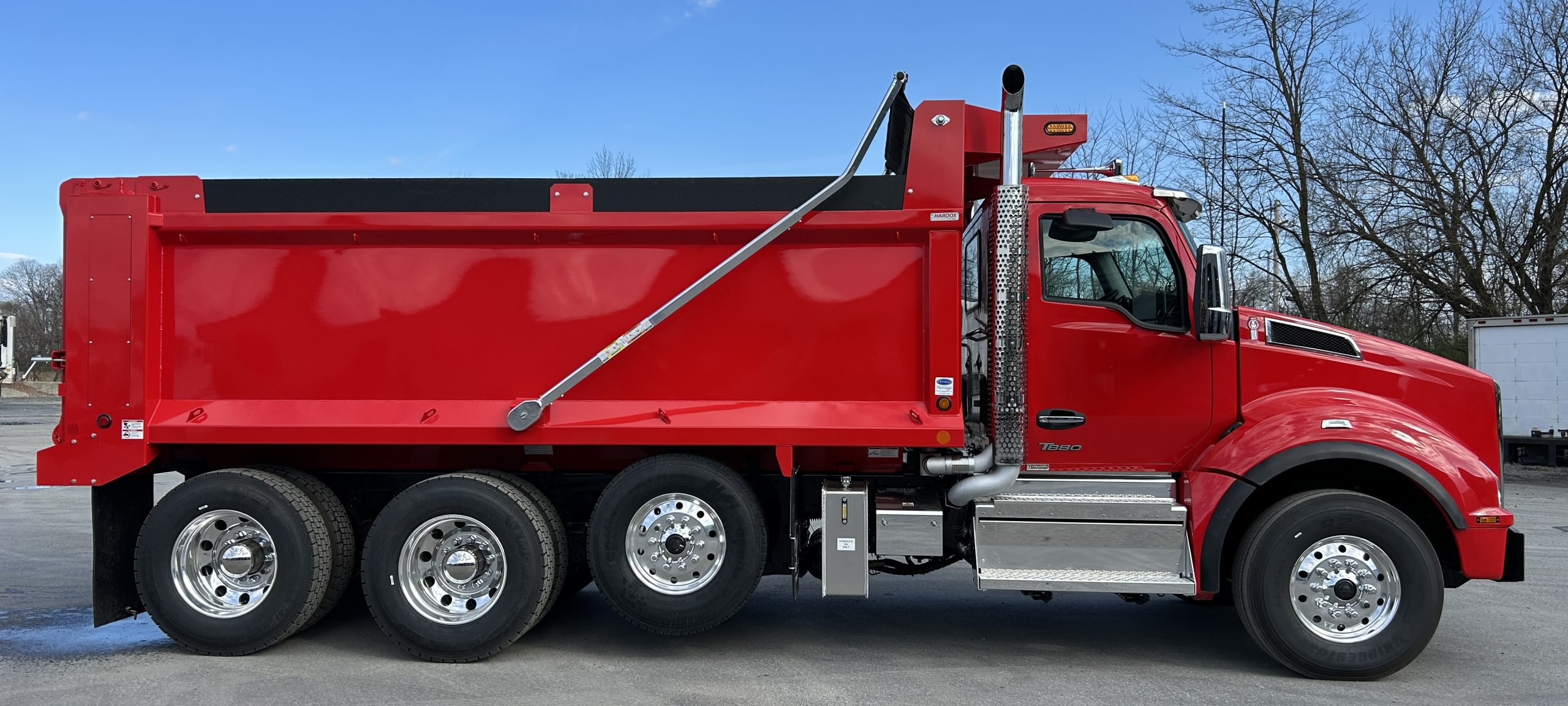 This Tri Axle Dump with get the job done with its Viper Red color. Vehicle Specs: Body: Heritage Body with Aero Electric Tarpar Engine: Paccar MX13 510 HP 1850 Torque Engine Transmission: Allison 4500RDS Transmission Mileage: 0 Features and Equipment: 46K Rears with Lockers and separate switches for each axle 110 Gallon Fuel Tank and 14 Gallon DEF Tank Air Ride Driver Seat and Toolbox Rider Seat KW Aero Mirrors with Chrome Shells Stainless Steel Exterior Sunvisor High Lift Tailgate Rear Vision Camera installed in rear body post