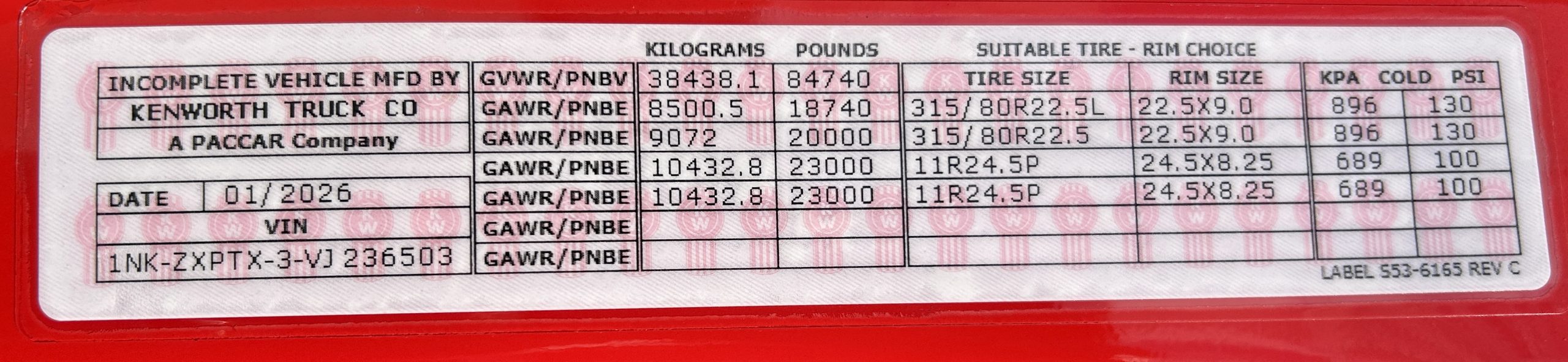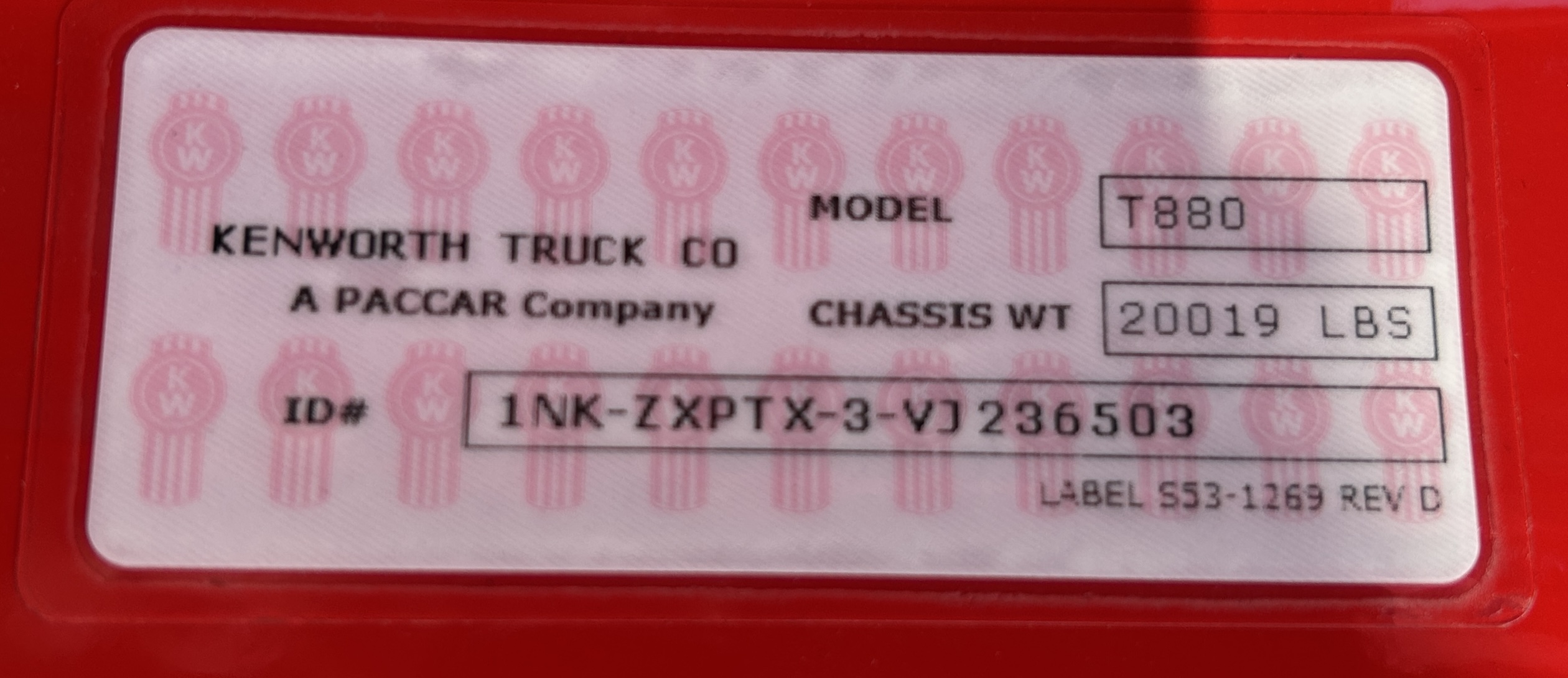 | Manufacturer: KENWORTH | VIN: 1NKZXPTX3VJ236503 |