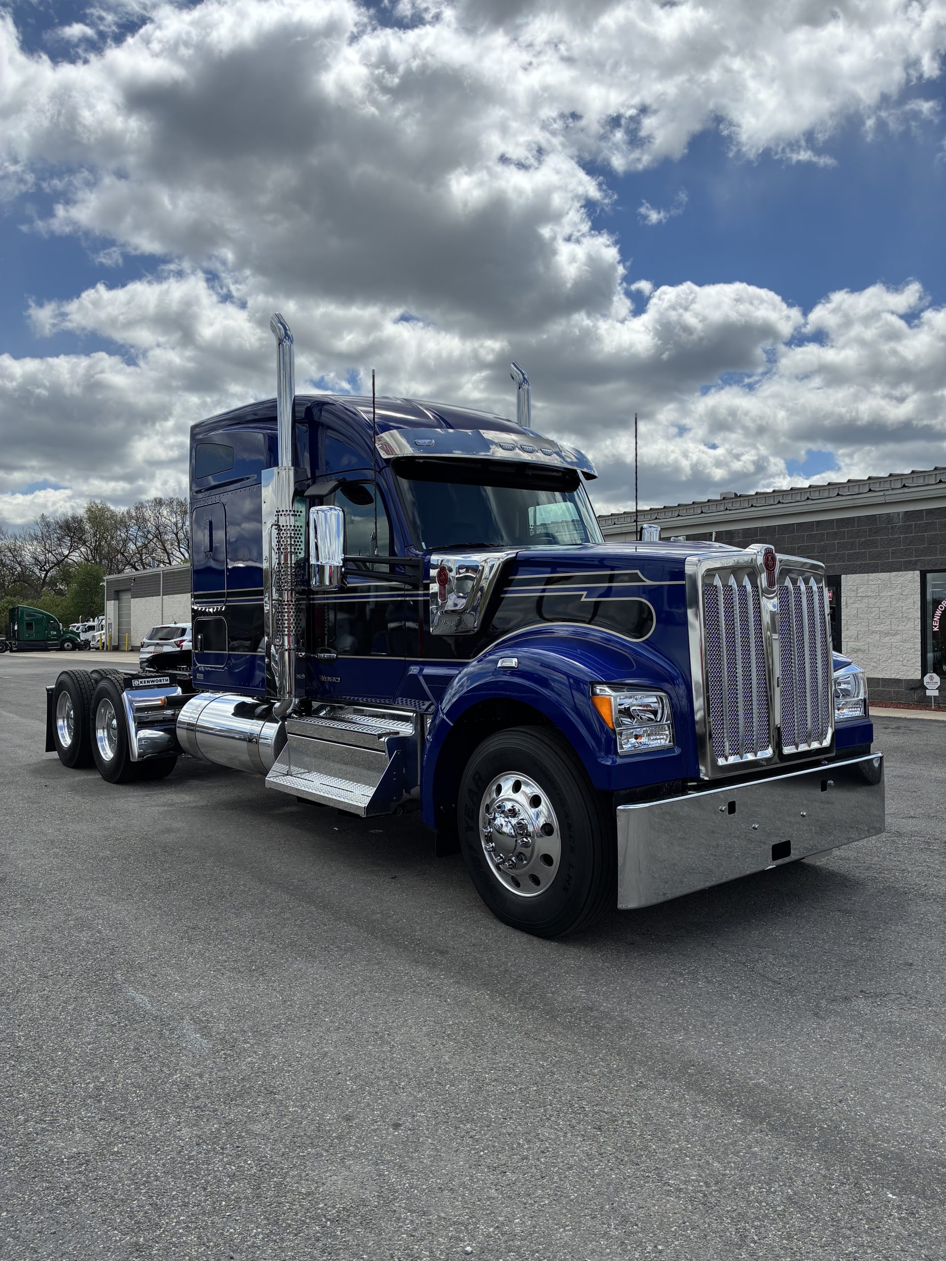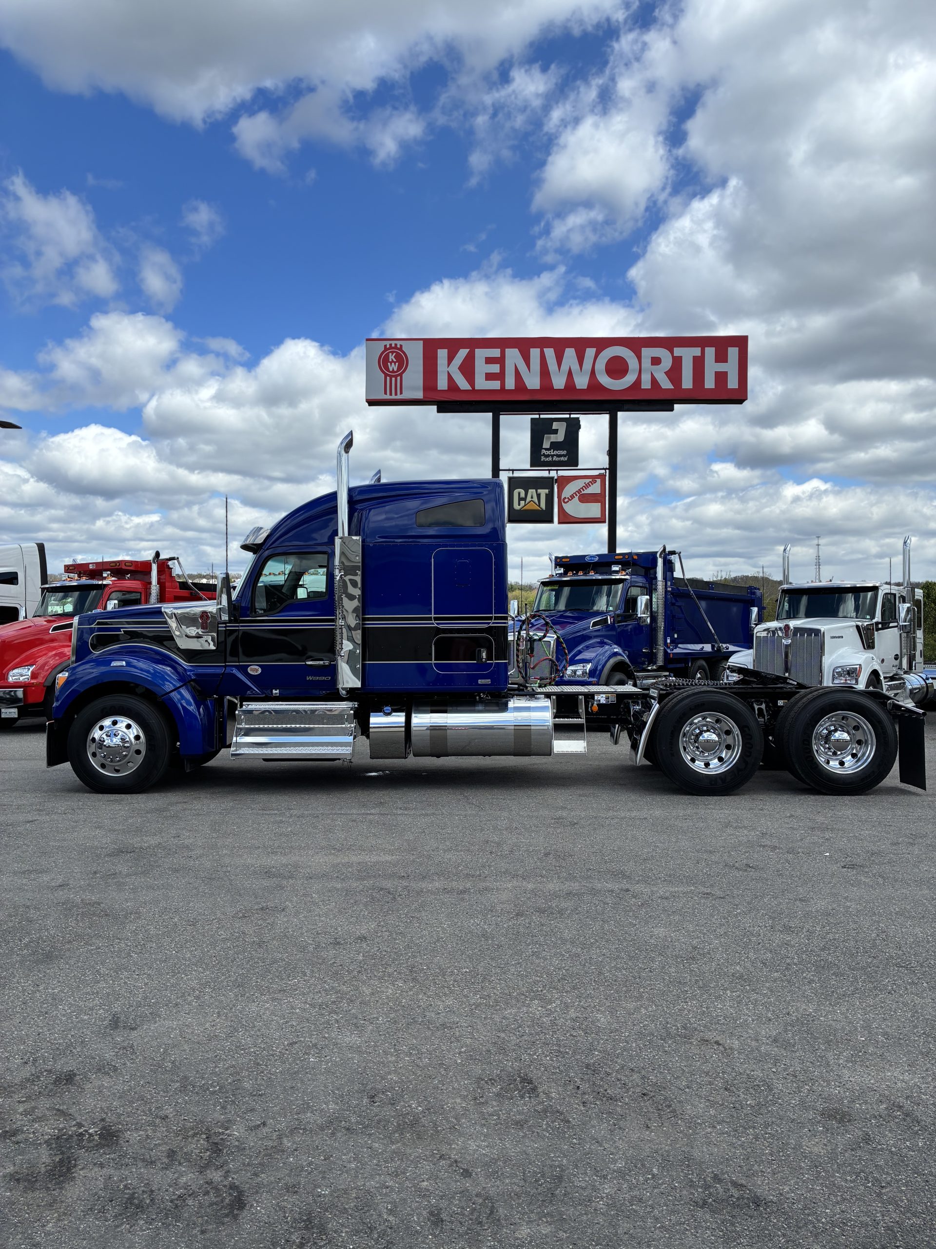 2027 Kenworth W990 76” Mid Roof Sleeper in a beautiful Viper Blue color. Ready to work! Vehicle Specs: • Engine: Cummins X15 565HP 1850 Torque • Transmission: Eaton 18Spd Transmission • Mileage:225.7 • Wheelbase:275 • Ratio:3.55 Vehicle & Equipment: • 12K Front Axle Capacity • 46K Rear Axle Capacity • 76in Integral Mid-Roof Sleeper • Espar Bunk Heater • 12” Leather Smart wheel • Diamond VIT Interior • CB Kit • AM/FM/WB/USB/Bluetooth Radio • Texas Square Bumper • 11R24.5 Alcoa Wheels